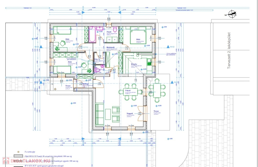 Tető: teljes kivitelben, de a terasz fedése nélkül