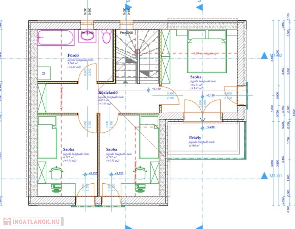 Amerikai konyhás nappali + étkező, 4 hálószoba, fürdőszoba, külön WC, kamra, erkély