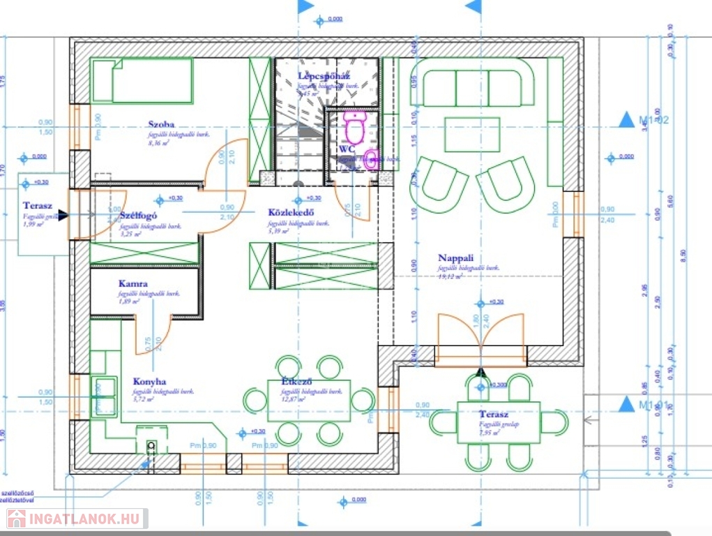Nettó alapterület: 92,11 m² + 8 m² terasz