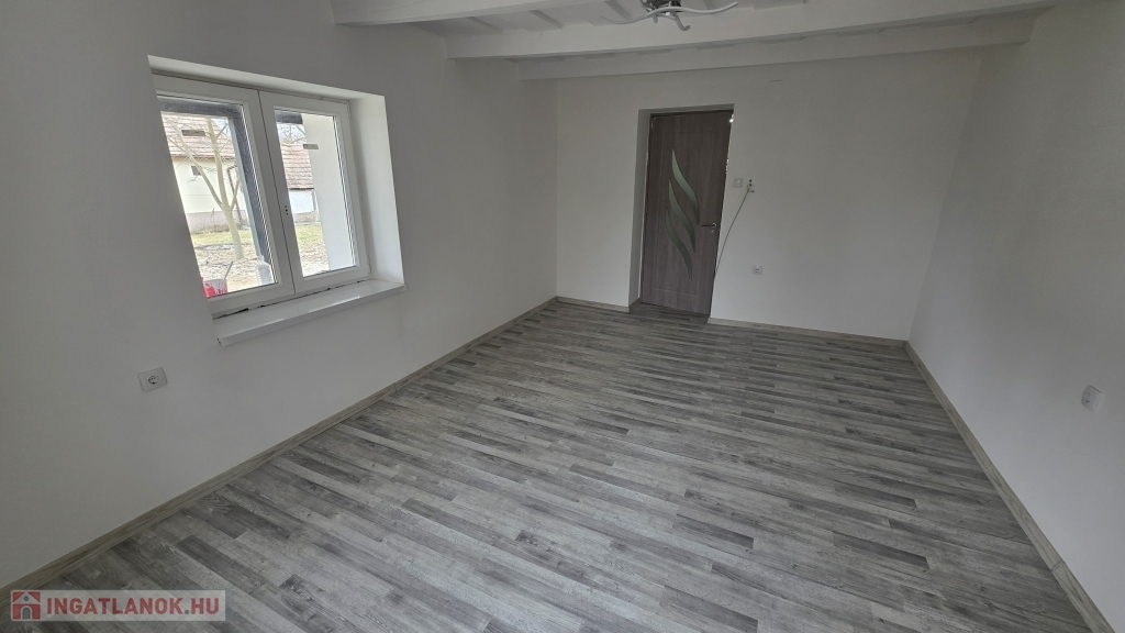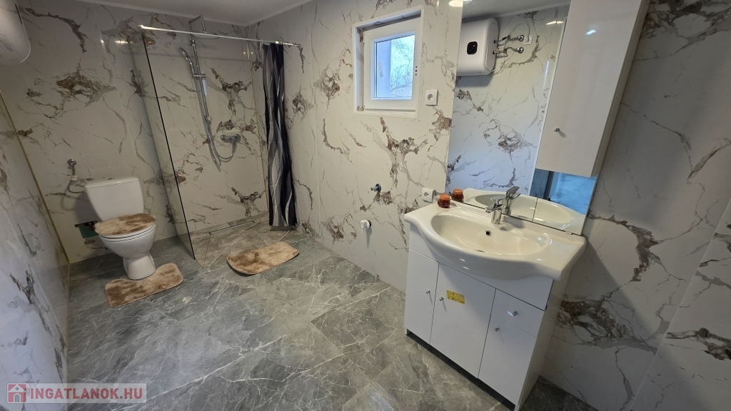 Az épület idén került felújításra - még most is zajlik a befejezése. Kialakításra került egy szép, nagy fedett terasz. Innen nyílik a bejárat a házba, mely a konyha/étkezőbe vezet. Balra találjuk a fürdő/mosdó helyiséget, ahol zuhanyzó kerül kialakításra, mosdóval. A mosdó csapteleppel és kis mosdó alatti szekrénykével kerül átadásra. A konyhában és a fürdőszobában hideg burkolat kerül - 60x60-as járólapokkal (alatta lépésálló szigeteléssel, 4-es betonhálóval és 10 cm-es padloponnal) - a falra pedig csempe került. A konyhában a konyhabútor is része az ajánlatnak a mosogatóval - gépek nélkül. A szobába laminált parketta burkolat került, mely alatt természetesen padlópon és szivacs szigetelés található. Az épületben a teljes villanyhálózat, vízvezetékhálózat kicsererélésre került - 32 amperes villanyóra van igénylés alatt. Az otthon melegét 1 db inverteres klíma és fali elektromos panel fogja adni. A falak belső és külső festése folyamatban (fehér falak - lábazat szürke) , valamint a ház külső szigetelése 15 cm-es nikecellel történik. A nyílászárók is kicserélésre kerültek - új ablakok + új párkányok, bejárati ajtó és a belső ajtók is kicserélésre fognak kerülni. A födémen 10 cm-es közetgyapot szigeletés várható. A padlásfeljáró a fürdőszobából közelíthető meg.