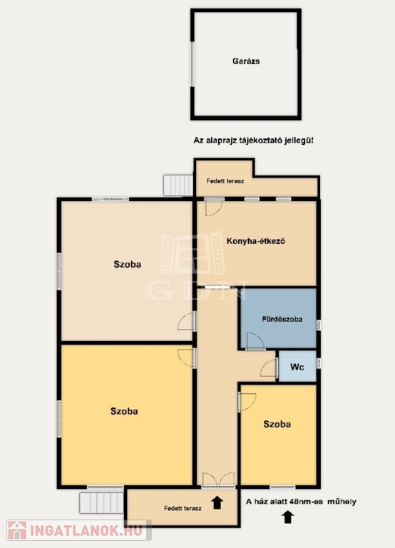 A masszív háromszintes épület 1982-ben épült, állapota korának megfelelő, modernizálásra-felújításra szorul. Az ház alatt találunk egy 48nm-es alagsori műhelyt 3X20A ipari árammal , valamint az udvaron egy praktikus garázs-melléképület kapott helyett ami egyéb tevékenységre-tárolásra alkalmas.