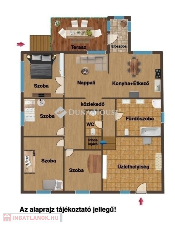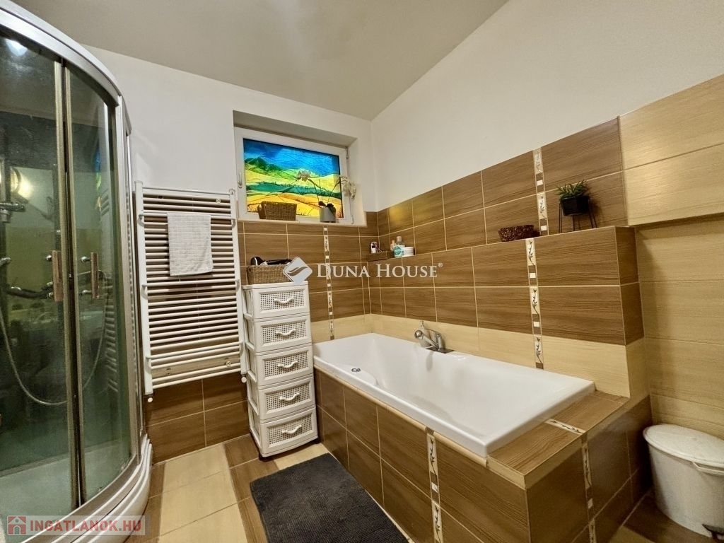 Eladó igényes családi ház Tokodon - Nyugalom, tér és kényelem egy helyenTokod csendes, családias részén kínálok megvételre egy 216 m²-es, kifogástalan állapotú családi házat, amely egy 704 m²-es telken helyezkedik el.Az ingatlan gondos karbantartásának köszönhetően nem igényel felújítást, így új tulajdonosa gondtalanul veheti birtokba.A földszinten egy világos amerikai konyhás nappali, négy szoba, fürdőszoba és külön WC található, valamint egy külön helyiség, amely jelenleg szépségszalonként működik. Ennek utcafronti elhelyezkedése miatt kiváló lehetőséget biztosít vállalkozás működtetésére, akár meglévő funkcióval, akár új elképzelések szerint.Az ingatlan egyik különlegessége a tetőtérben kialakított három külön lakás , amelyek külön bejárattal és almérőkkel rendelkeznek.Ez remek lehetőség bérbeadásra, vendégek fogadására vagy akár több generáció kényelmes együttélésére.Az épület alatt kialakított alagsor két külön bejárattal rendelkezik: az egyik rész közösségi térként és kazánházként funkcionál, míg a másik egy hangulatos, baráti összejövetelekre tervezett helyiségként alakítható tovább.A mindennapi kényelmet tovább növeli a nagy fedett terasz, amely tökéletes helyszíne lehet családi étkezéseknek, pihenésnek vagy baráti találkozóknak.Műszaki szempontból is megbízható választás: a ház tégla építésű, szigetelt, jó állapotú tetővel rendelkezik, fűtéséről gázkazán gondoskodik padlófűtéssel és radiátorokkal kiegészítve, a kellemes hőmérsékletről pedig minden lakrészben hűtő-fűtő klíma gondoskodik.A környék különösen kellemes és nyugodt, a közelben csordogáló patak pedig még barátságosabbá és meghittebbé teszi a mindennapokat.Ez az ingatlan ideális választás mindazok számára, akik csendes környezetben szeretnének élni, miközben egy sokféleképpen kihasználható otthont keresnek akár családi, akár üzleti vagy befektetési céllal.Amennyiben az ingatlan felkeltette az érdeklődését várom megtisztelő hívását!