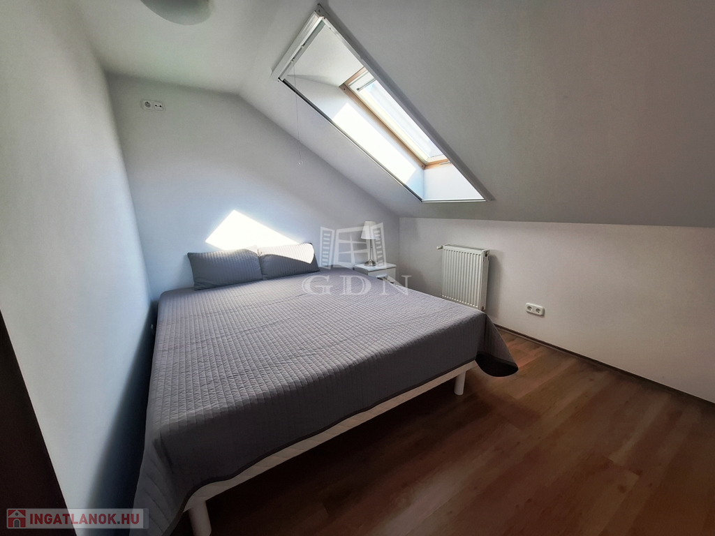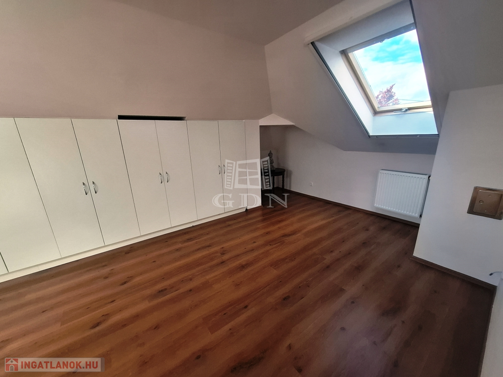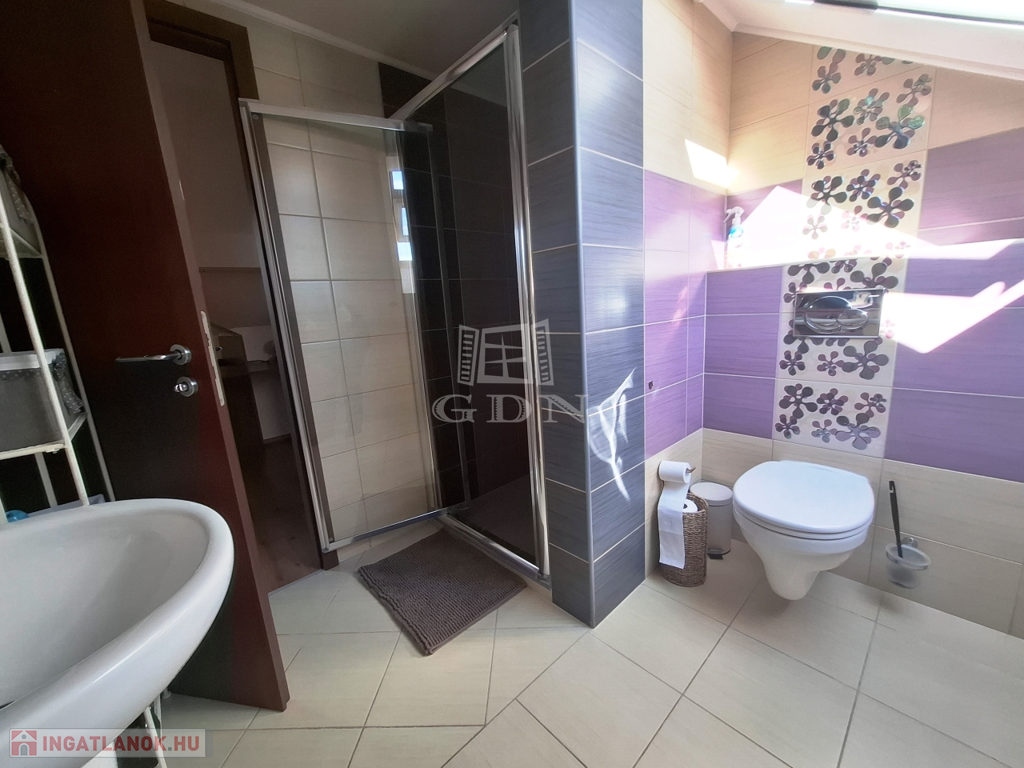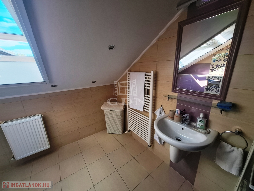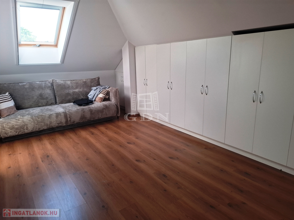 Felső szint: tágas nappali dolgozó sarokkal, 3 hálószoba, fürdőszoba zuhannyal.