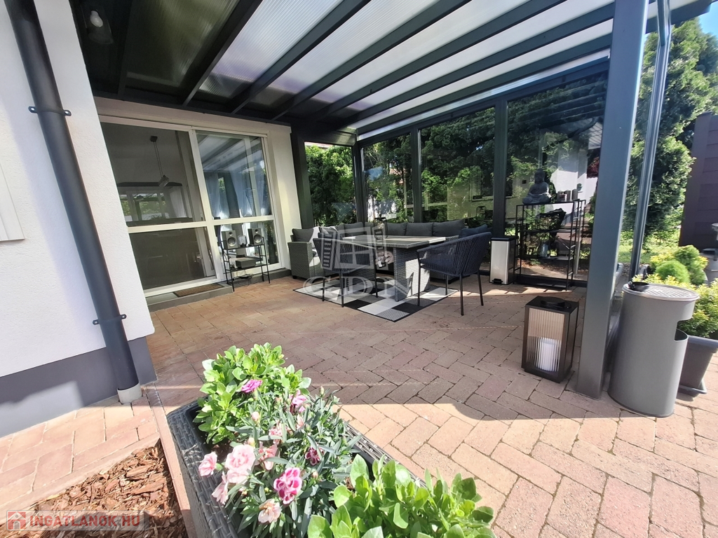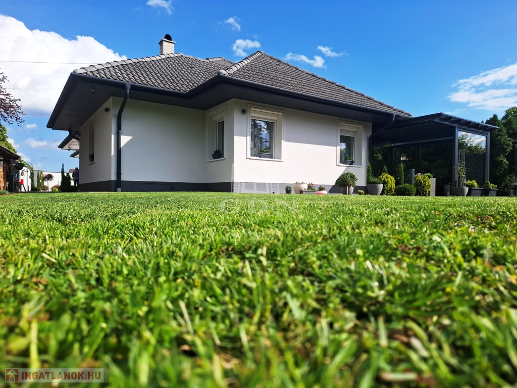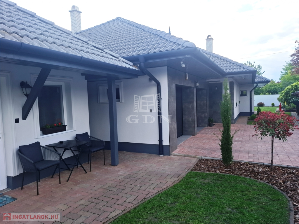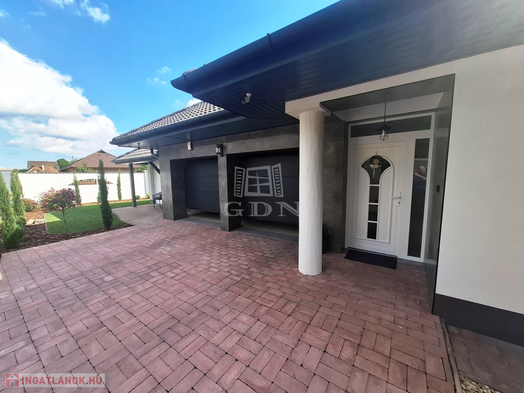 A 2003-ban épült ház egy 730 m²-es, gondosan karbantartott telken áll, melyet masszív betonkerítés és elegáns kovácsoltvas betétek ölelnek körbe. Az ingatlan 38-as Porotherm téglából, vasbeton födémmel és betoncserepes tetővel épült, külső hőszigetelését 15 cm-es Dryvit rendszer biztosítja. A modern műanyag nyílászárók thermo üvegezésűek, redőnnyel és szúnyoghálóval felszereltek.
