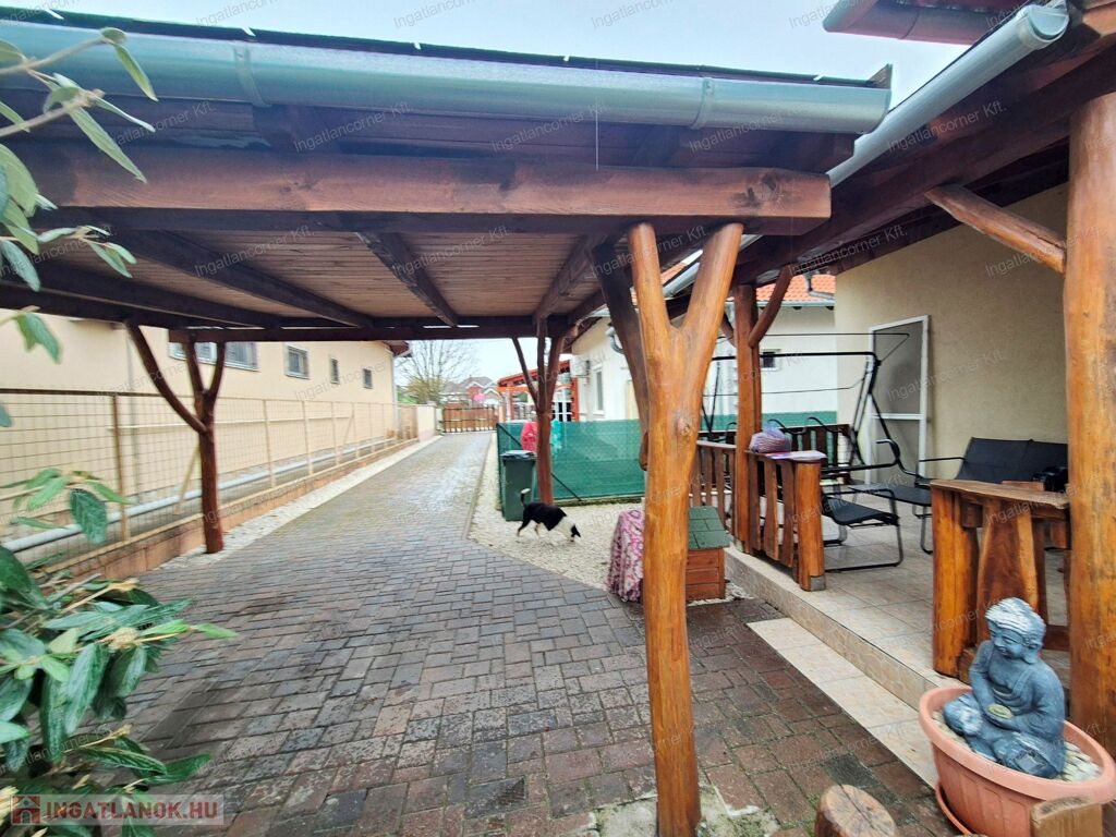 -PARKOLÁS: 1 autónak FEDETT BEÁLLÓ is kialakításra került, de hátsó ház lévén a szorgalmi út végig térkővel burkolt, így 5 autó parkolása is megoldott telken belül.