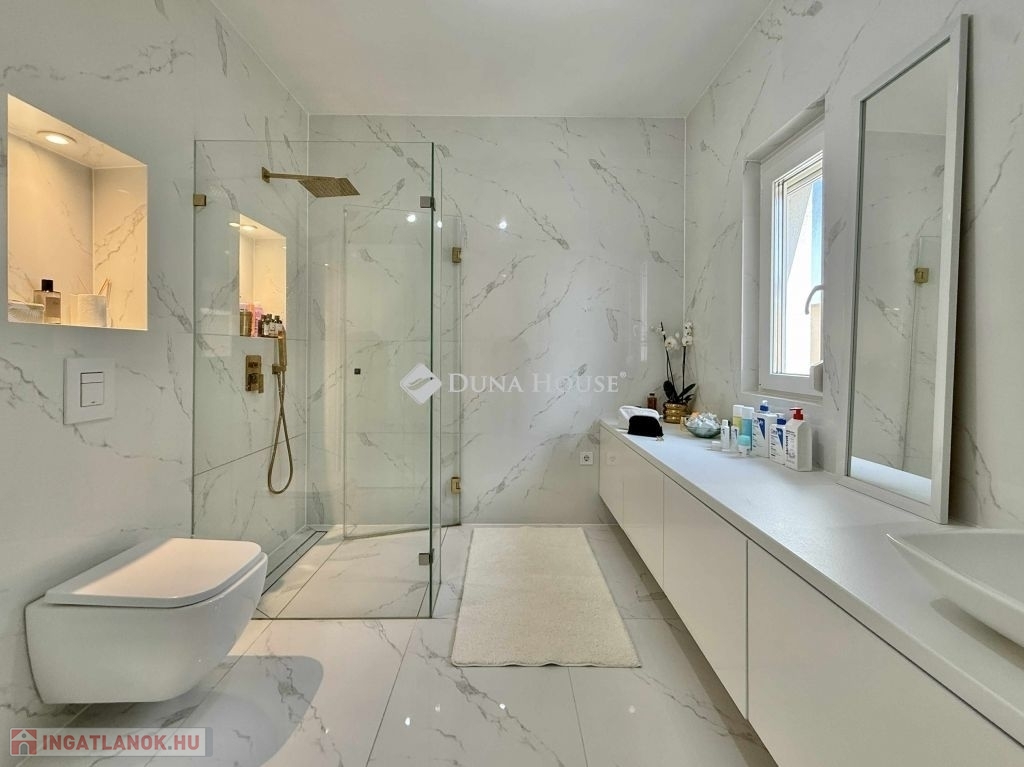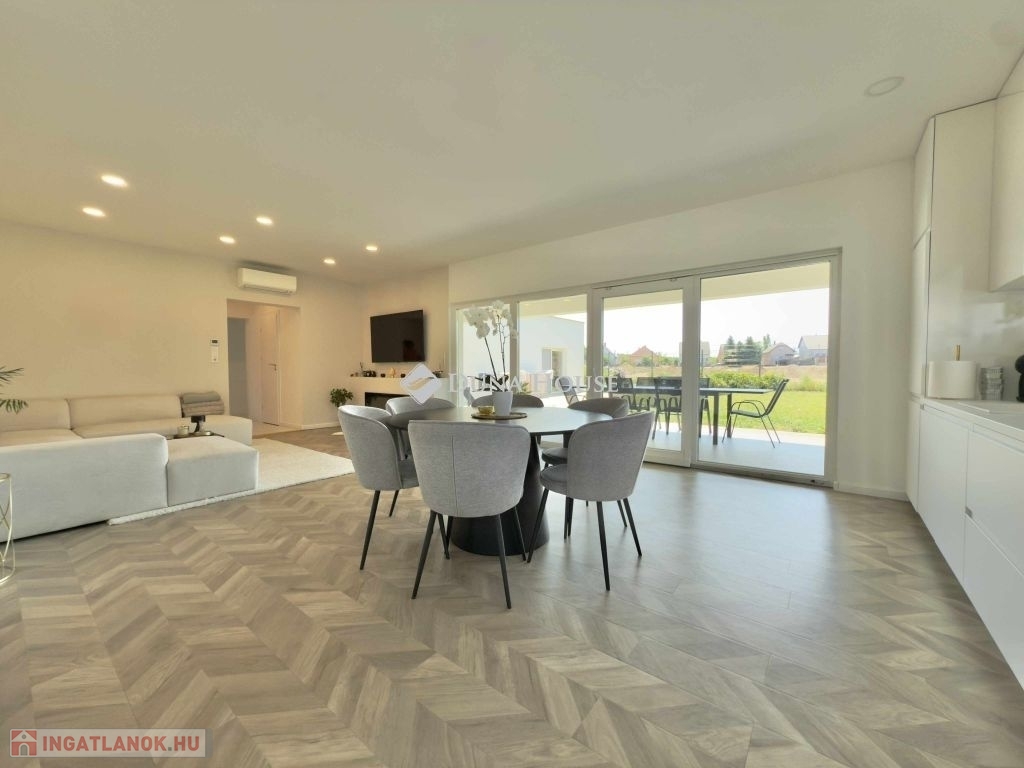Eladó modern, újépítésű családi ház Tolna egyik legnyugodtabb részén!Ha olyan otthonra vágyik, ahol a letisztult dizájn, a kényelem és az energiatakarékosság találkozik, ne keressen tovább! Tolnán kínáljuk megvételre ezt a mindössze két éve épült, kiváló állapotú, modern családi házat, amely minden igényt kielégít.Belépve a házba világos, tágas és harmonikus terek fogadják a látogatót. A jelenlegi elrendezésben egy nyitott konyha-étkező-nappali tér teremti meg a családi együttlétek színterét, emellett három napfényes hálószoba, két zuhanyzós fürdőszoba, külön mosókonyha és 2 praktikus gardrób is rendelkezésre áll minden részlet a funkcionalitást és a kényelmet szolgálja.Az ingatlan kialakítása során a legmodernebb építészeti és technológiai megoldások kerültek alkalmazásra, így a ház nemcsak stílusos, hanem energiatakarékos is. A kiváló szigetelésnek és a korszerű rendszereknek köszönhetően a fenntartási költségek minimálisak lehetnek.A nagy ablakfelületeknek és az átgondolt térszervezésnek köszönhetően a természetes fény egész nap átjárja az otthon minden pontját, kellemes, barátságos atmoszférát teremtve.A ház egyik különlegessége a 65 négyzetméteres terasz, amely tökéletes helyszíne lehet baráti összejöveteleknek, nyári vacsoráknak vagy a mindennapi pihenésnek a szabadban.Ez az ingatlan ideális választás lehet fiatal pároknak, kisgyermekes családoknak, de akár idősebbek számára is, akik hosszú távra keresnek kényelmes, korszerű és szerethető otthont.Ne hagyja ki ezt a lehetőséget kérjen időpontot személyes megtekintésre még ma!