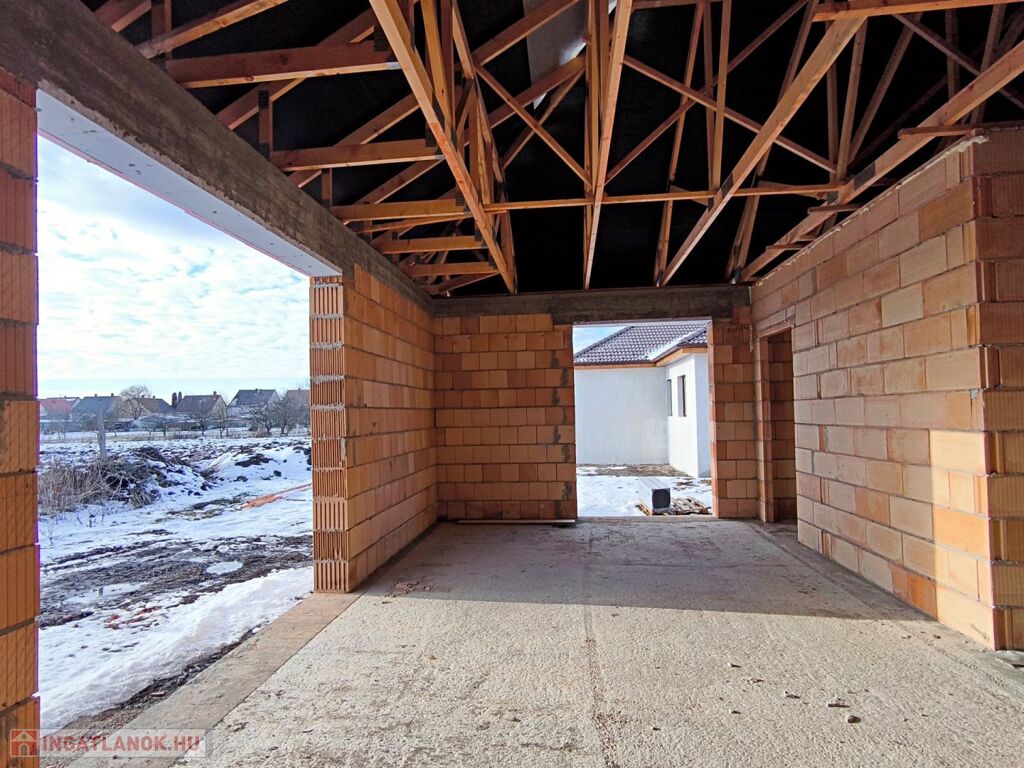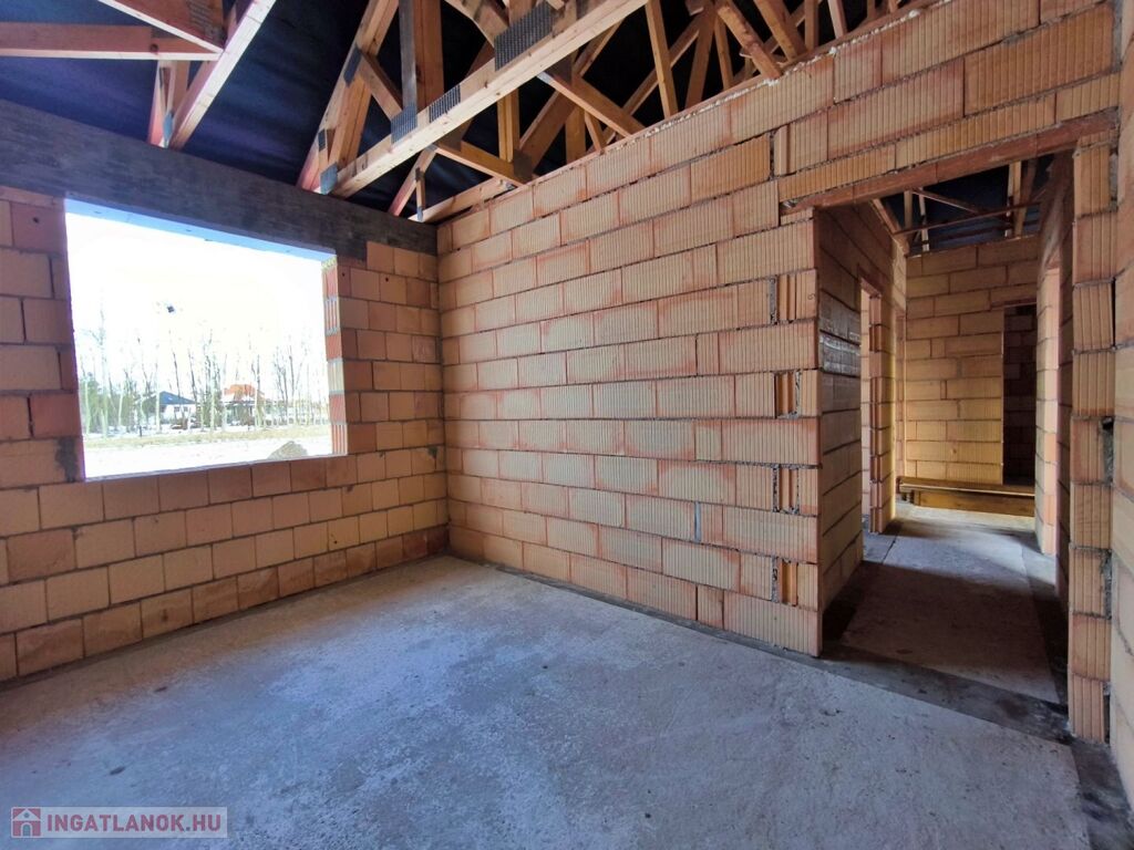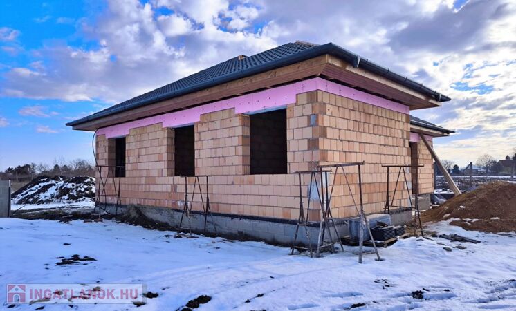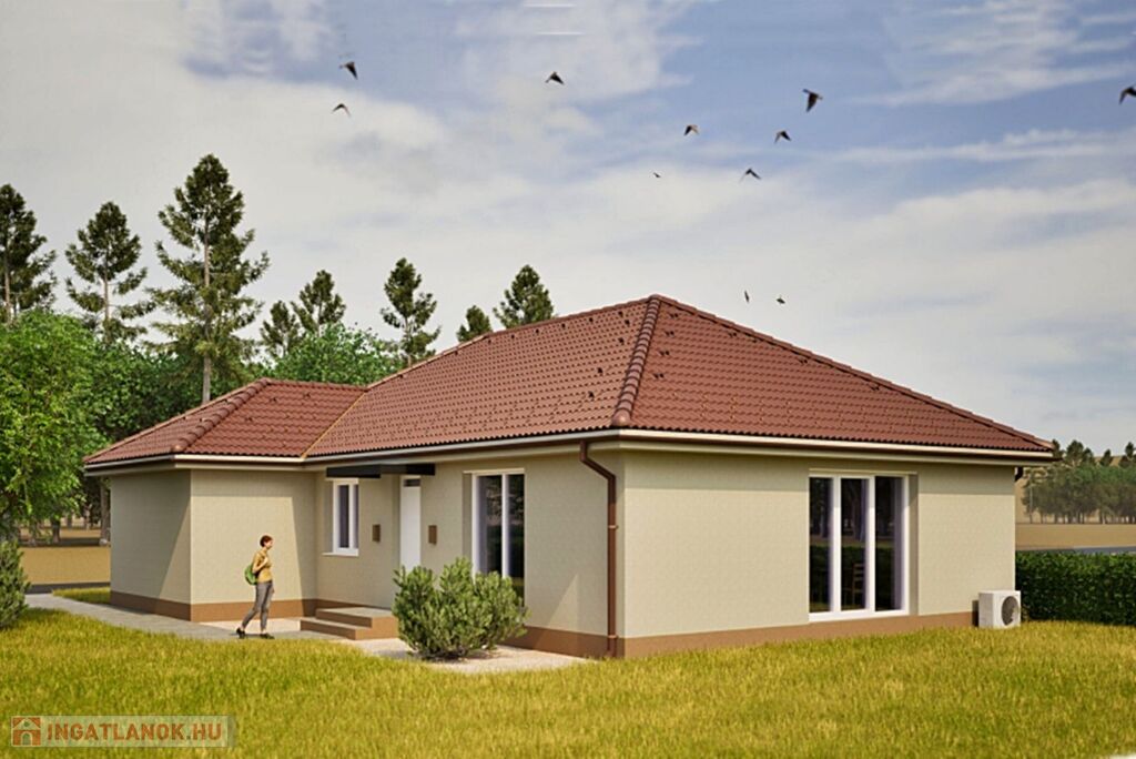 A ház helyiségei: amerikai konyhás nappali, 4 hálószoba, fürdő WC-vel, külön WC, kamra, háztartási helyiség, előszoba, közlekedő. Másik fürdőszoba megoldható