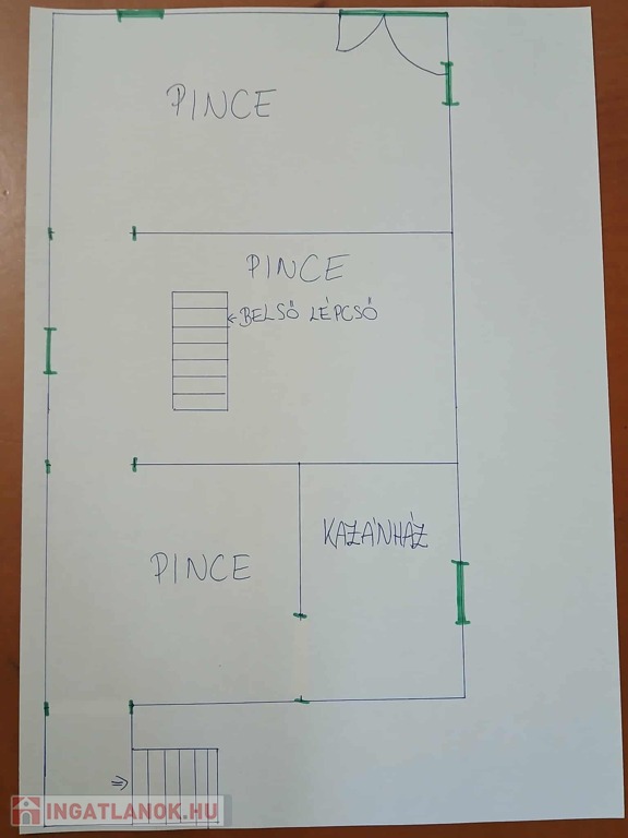 Pince: (114m2) a teljes ház alatt pince húzódik, két bejárattal, ahol akár garázs, kisbolt, fodrászat vagy egyéb üzlet is kialakítható.