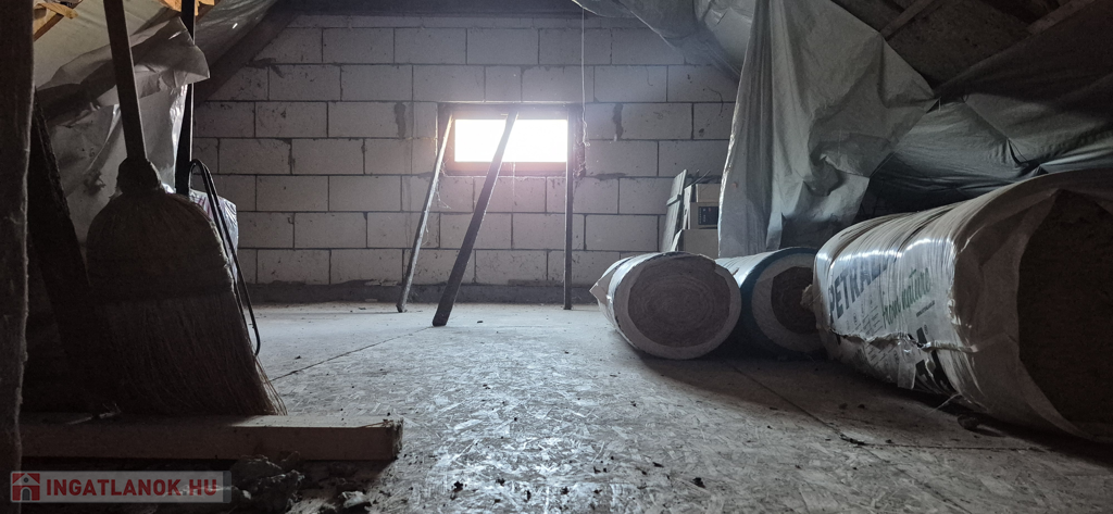 Beépíthető a tetőtér, már elkezdődött a szigetelése. Hozzá építhető még 230 m² lakás, mert 25% a beépíthetőségi százaléka, így 280 nm-es házzal