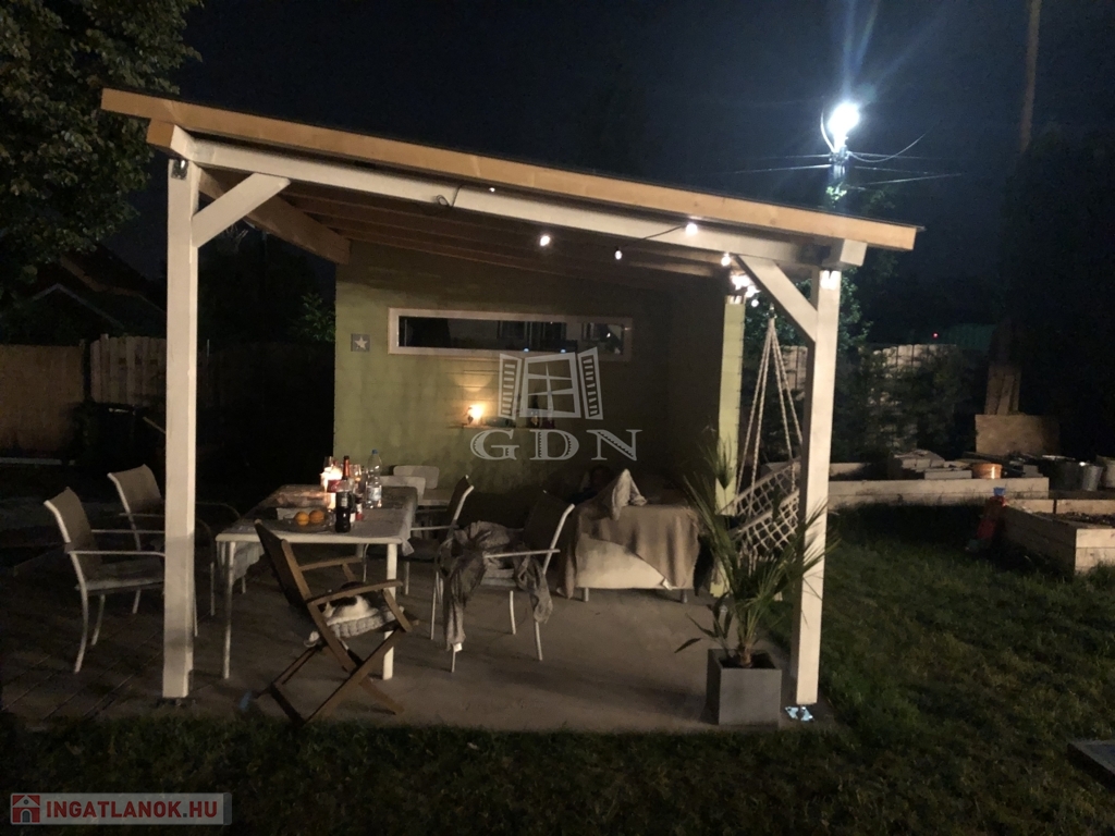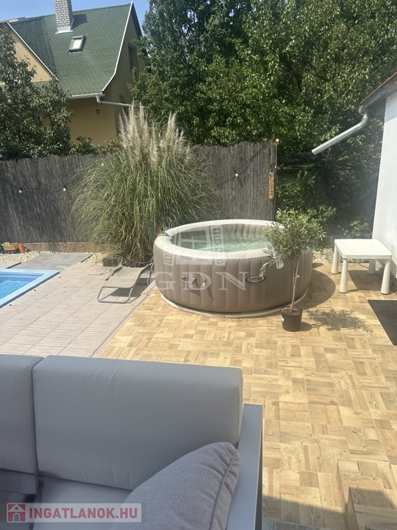 A parkosított kertben egy 6 X 3 méteres vízforgatós medence található. Ezen felűl egy 10 nm - es faház saját terasszal is rendelkezésre áll, amely ideális hobbinak vagy szerszámoknak.