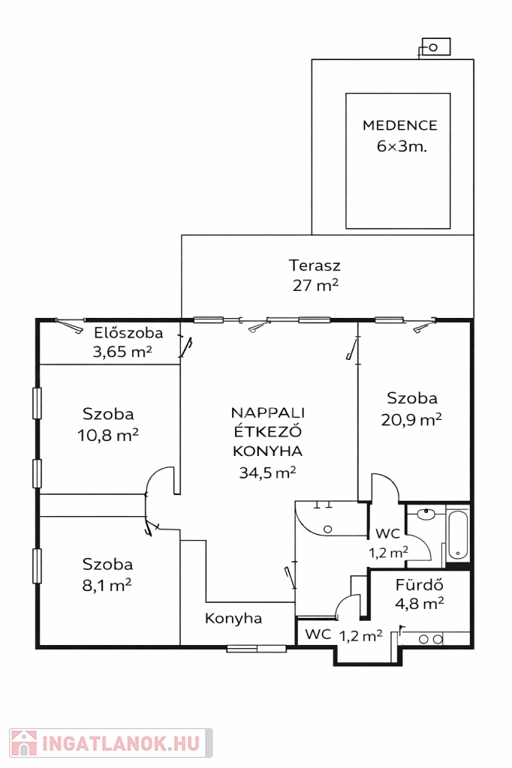 - Második fürdőszoba (kádas) a kényelmes készülődésért.