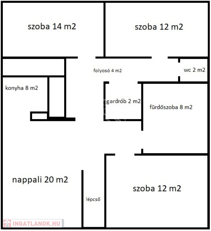 Helyiségek: fürdő/WC, WC, amerikai konyha-nappali-étkező, 1 + 2 fél szoba, gardrób