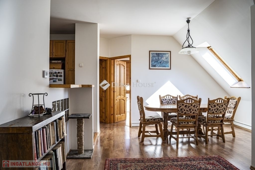 HITELFELVEVŐK FIGYELEM: OTTHON START HITELRE ALKALMAS CSALÁDI HÁZ!BEFEKTETŐK FIGYELEM: KÉTGENERÁCIÓS, EZÉRT KÉTLAKÁSOS TÁRSASHÁZZÁ ALAKÍTHATÓ!Törökbálint kisvárosias, csendes részén 154 m2-es két generációs családi ház (további 91 m2 pincével) eladó, 551 m2 telekkel.A kétszintes, manzárdtetős, tetőtér beépítéses ház alsó szintje a 70-es években épült téglaépület, felső szintje 2002-ben került kialakításra, anyaga Ytong. A földszinten konyha és nappali, 3 nagy szoba, fürdőszoba WC-vel, kamra, fedett terasz és egy külön WC, a tetőtérben kis gardróbszoba, hatalmas amerikai konyhás nappali, 3 szoba, fürdőszoba WC-vel és egy nyitott terasz található. A tetőtér nettó alapterülete 77,5 m2. A ház kert felőli részén található egy második bejárat is.Kiváló állapotú kétrétegű thermo fa ablakok vannak a felső szinten, a földszint nyílászárói átlagos állapotúak, a falakon repedések nem találhatóak, a víz- és elektromos vezetékek cseréje megtörtént, a födém jó állapotú, a tetőtér beépítetlen része jól szigetelt, összességében jó műszaki állapotban van az ingatlan. Az erkélyek és a földszinti házrész az új tulajdonos ízlése szerint esztétikailag felújítható.Fűtése gáz cirkó, a meleg vizet két villanybojler szolgáltatja.A kertben kétállásos, szigetelt garázs található elektromos ajtóval.A ház teljes egészében alápincézett, a pince teljes alapterülete 91,96 m2 és öt helységből áll. Némi ráfordítással tökéletes irodahelyiséggé alakítható.Az ingatlanban van ipari áram is (400 V). A ház csendes környéken található, átmenő forgalom gyakorlatilag nincs. A közelben található iskola, óvoda, Sport Centrum.A hirdetésben szereplő FIX 3%-os lakáshitel részét képező támogatásokat Magyarország Kormánya nyújtja.