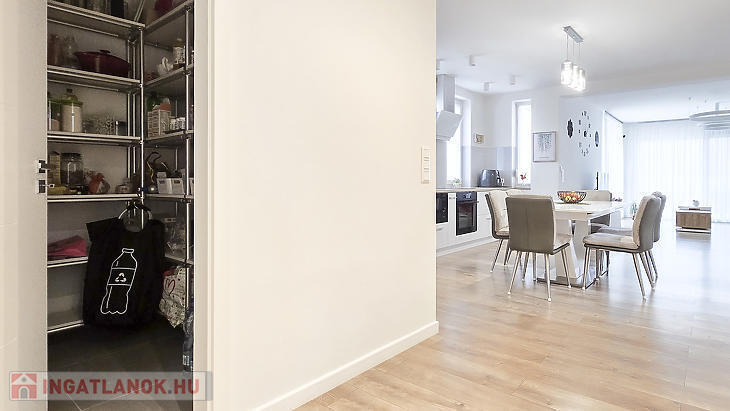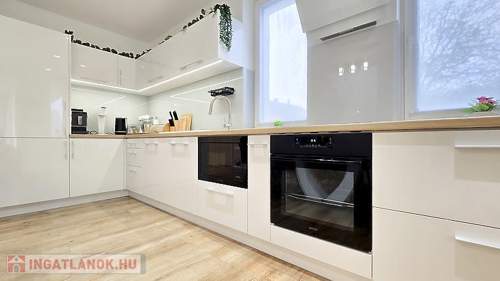 - Teljesen gépesített konyha: beépített hűtő, mikró, sütő, indukciós főzőlap, mosogatógép