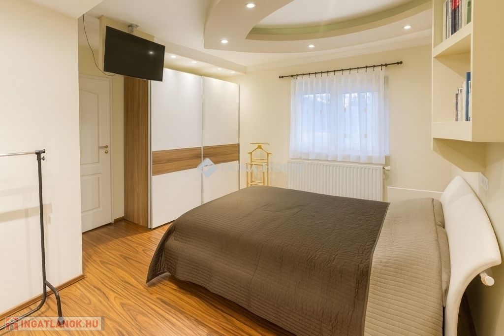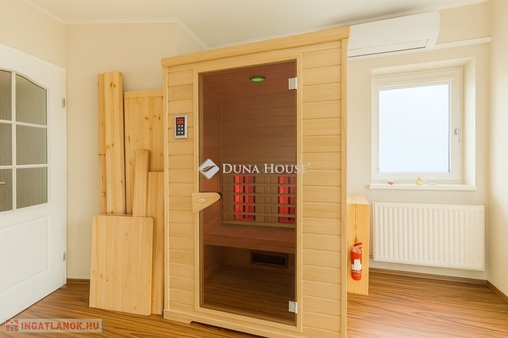 - Emelet: 3 hálószoba, luxus fürdő Wellis jacuzzis káddal, infraszauna- Kültér: három terasz, köztük egy fedett, motoros napellenzővel