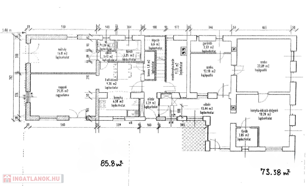 - Falak: 50 cm mészkő, tégla + szigetelés