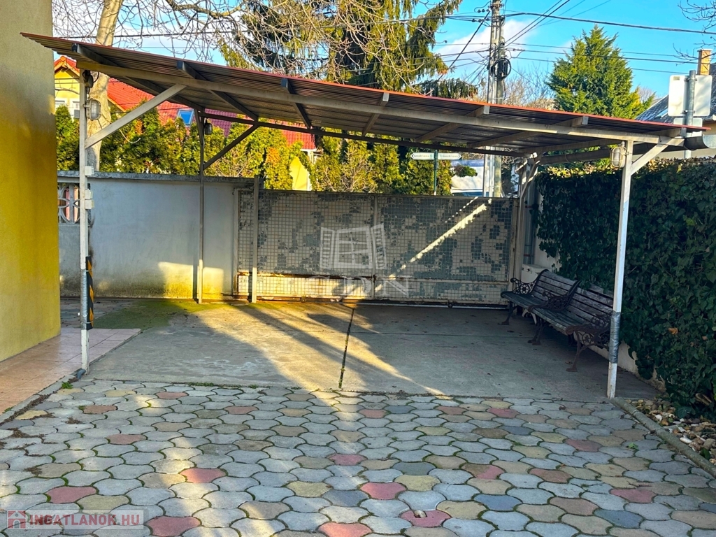 Gondozott kert, automata öntözőrendszerer, ciszterna, kút, 4állások fedett kocsibeálló.