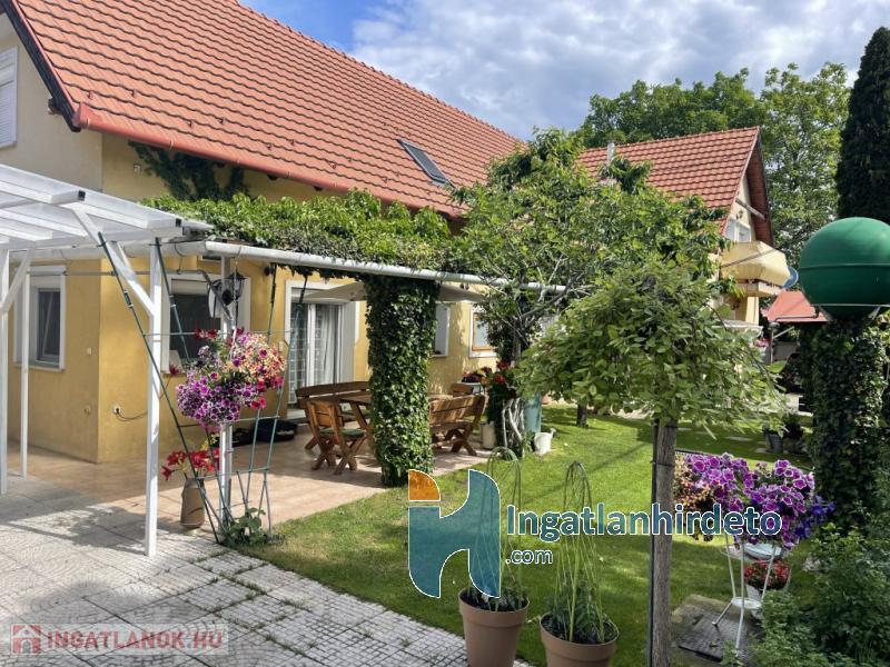 Elhelyezkedése: Belterület Tájolása: Dél-nyugai tájolású Állapota: Kiváló Komfort besorolása: Dupla komfortos Építési éve: 2006 Alapterülete: 319 m2 Telekterülete: 515 m2 Szobák száma: 8szoba Felújítás éve: 2022 Felújítás során elvégzett munkák: Festés, Tapétázás, Villanyrendszer csere, Vízrendszer csere, Fűtésrendszer csere, Csempe csere, Járólap csere, Parketta csere, Fűrdőszobai szaniterek cseréje, Belső átépítés, Tetőfelújítás, Tetőszigetelés, Külső hőszigetelés, Új külső vakolat, Nyílászárók cseréje, Hőszigetelt nyílászárók beépítése, Új beépített bútorok, Redőnycsere, Lépcsőház felújítás, Új kaputelefon, Tetőtéri ráépítés Közművek: Gáz, Víz, Villany, Csatorna Gázellátás: Vezetékes Vízellátás: Vezetékes víz, Kútról, Ciszternáról Melegvíz-ellátás: Gázkazán, Villanybojler Áramellátás: 230V Fűtés módja: Gáz, Villany Fűtés típusa: Cirkó, Egyéb Homlokzat állapot: Nívós Építési mód: Tégla, Vegyes falazat Tető formája: Magas Tető anyaga: Cserép Parkolási lehetőség: Garázsban, Utcán, Telken Kilátás: Utcafronti kilátás, Udvari kilátás Napelem: Nincs Jellemzői: Alacsony rezsi, Csendes környék, Jó közlekedés, Két bejárat, Redőny, Fűtött garázs, Ikergarázs, Légkondicionáló, Étkező, Udvari terasz, Amerikai konyha, Beépíthető tetőtér, Beépített szekrény, Beépített konyhabútor, Kaputelefon, Autóbeálló, Kert, Kerítés, Riasztó, Parketta burkolat, Egyedi vízóra , Saját fúrt kút, Térkő, Zöldterület, Kapunyitó automatika, Jó közbiztonság, Beépített tetőtér Energetikai besorolás: Nincs adat Egyéb jellemzők: Erkély, Terasz, Melléképület, Pince, Tetőtér Tv, Internet: Kábeltévé, Internet, Vezetékes telefon Közelben: Iskola, Óvoda, Vasútállomás, Autóbuszállomás, Orvosi rendelő, Bolt, Gyógyszertár, Postahivatal, Vendéglátó egység, Autópálya Rezsi költség(Ft): 60000 Terhelések: Tehermentes ingatlan Eladásra vonatkozó információk: Az ár tartalmazza a teljes berendezést