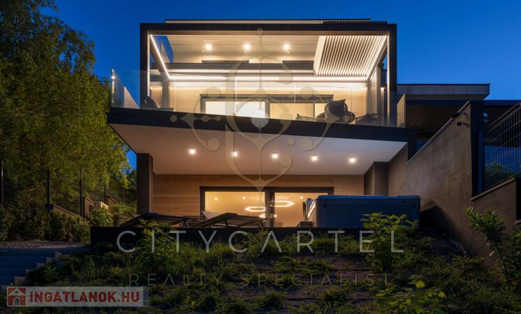 A 734 nm-es, gondosan kialakított lépcsőzetes telken álló ház minden négyzetmétere az igényességet és a minőséget tükrözi — a minőségi faburkolatoktól a mennyezetig érő ajtókig, a kristálycsillároktól a legapróbb, funkcionális részletekig.