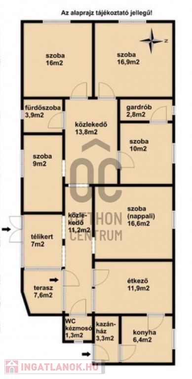 -helyiségei: 4 hálószoba, melyből az egyik gardróbbal is rendelkezik, nappali, konyha, étkező, közlekedő, fürdő, külön WC kézmosóval, déli tájolású terasz, pince, garázs, ólak,műhely, gazdasági épületek