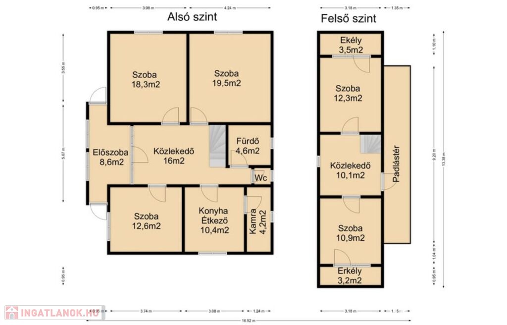 A ház felső szintjében, nem történtek felújítási munkálat, de jó állapotú.