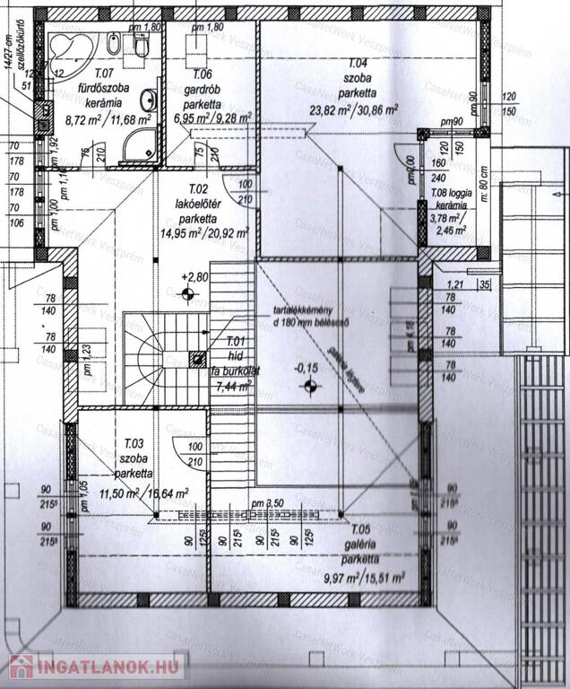 fürdőszoba, gardrób, nappali, loggia, galéria.