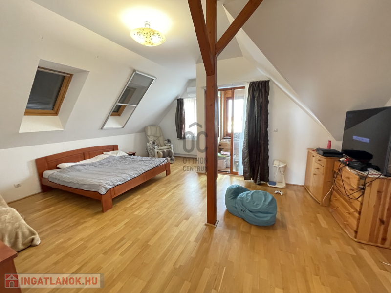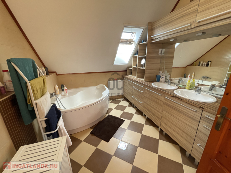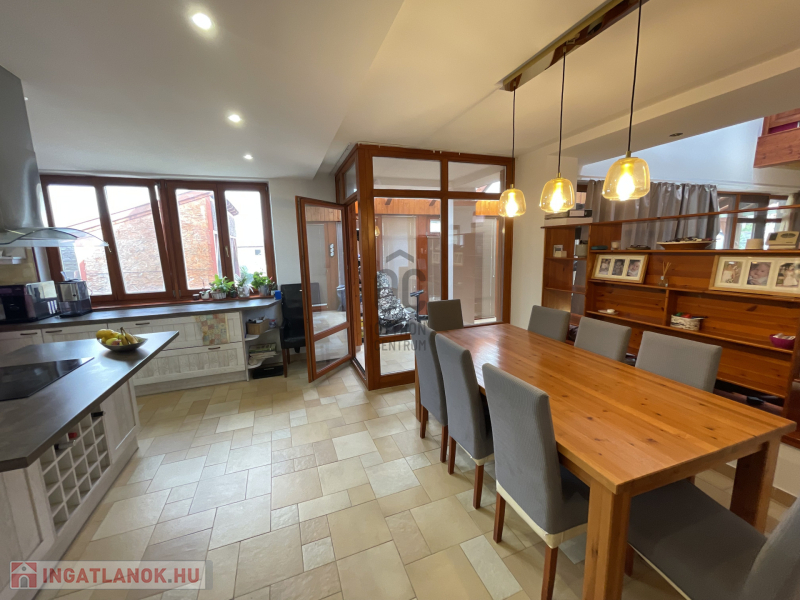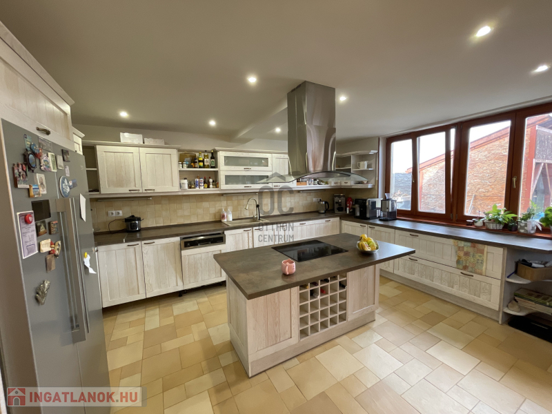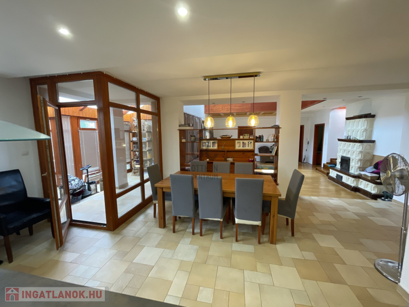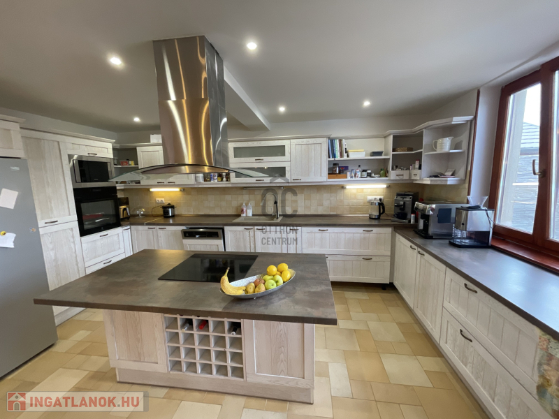 Hatalmas konyha, rengeteg pakolási lehetőséggel, beépített sütővel mikróval, mosogatóval, főzőlappal felszerelt. Egy tágas kamra található mellette. A család minden tagja elfér a 13nm-es étkezőben, innen léphetünk ki egy télikertbe, melynek mérete 12,27nm. A galériás nappali közel 40nm, végig ablakokkal, teraszajtóval ellátva, így rendkívül világos! A nappaliban helyet kapott egy cserépkályha is, mely kellemesen befűti az alsó teret. Egy szoba, fürdőszoba és egy dolgozó szobába léphetünk még be innen. Az emeletre érve egy tágas társalgó, és 3szoba kapott helyet, mindegyik háló hűtő-fűtő klímával ellátott, valamint az egyik szobában loggia is ki lett alakítva, sarokkádas fürdőszoba és egy gardrób is megtalálható. Összeségében rendkívül kényelmes, élhető otthont kap új Tulajdonosa.