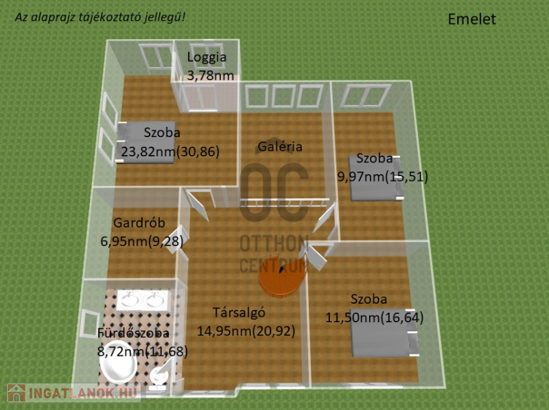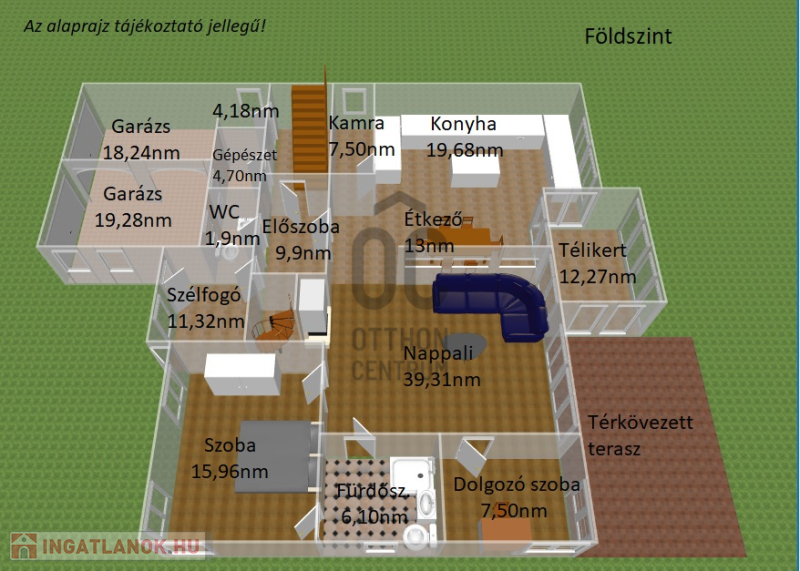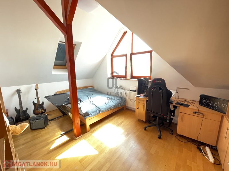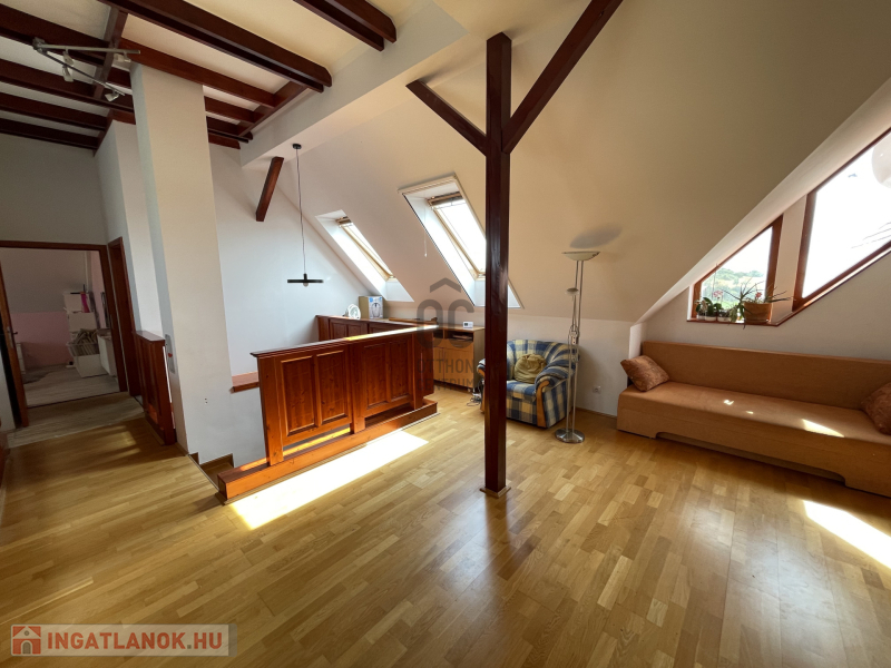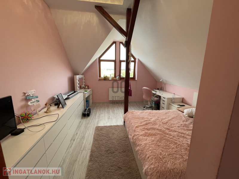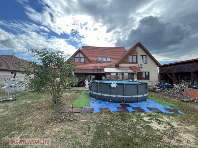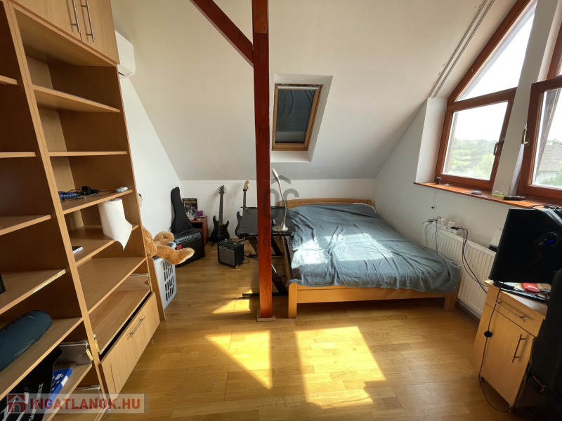 Hatalmas konyha, rengeteg pakolási lehetőséggel, beépített sütővel mikróval, mosogatóval, főzőlappal felszerelt. Egy tágas kamra található mellette. A család minden tagja elfér a 13nm-es étkezőben, innen léphetünk ki egy télikertbe, melynek mérete 12,27nm. A galériás nappali közel 40nm, végig ablakokkal, teraszajtóval ellátva, így rendkívül világos! A nappaliban helyet kapott egy cserépkályha is, mely kellemesen befűti az alsó teret. Egy szoba, fürdőszoba és egy dolgozó szobába léphetünk még be innen. Az emeletre érve egy tágas társalgó, és 3szoba kapott helyet, mindegyik háló hűtő-fűtő klímával ellátott, valamint az egyik szobában loggia is ki lett alakítva, sarokkádas fürdőszoba és egy gardrób is megtalálható. Összeségében rendkívül kényelmes, élhető otthont kap új Tulajdonosa.