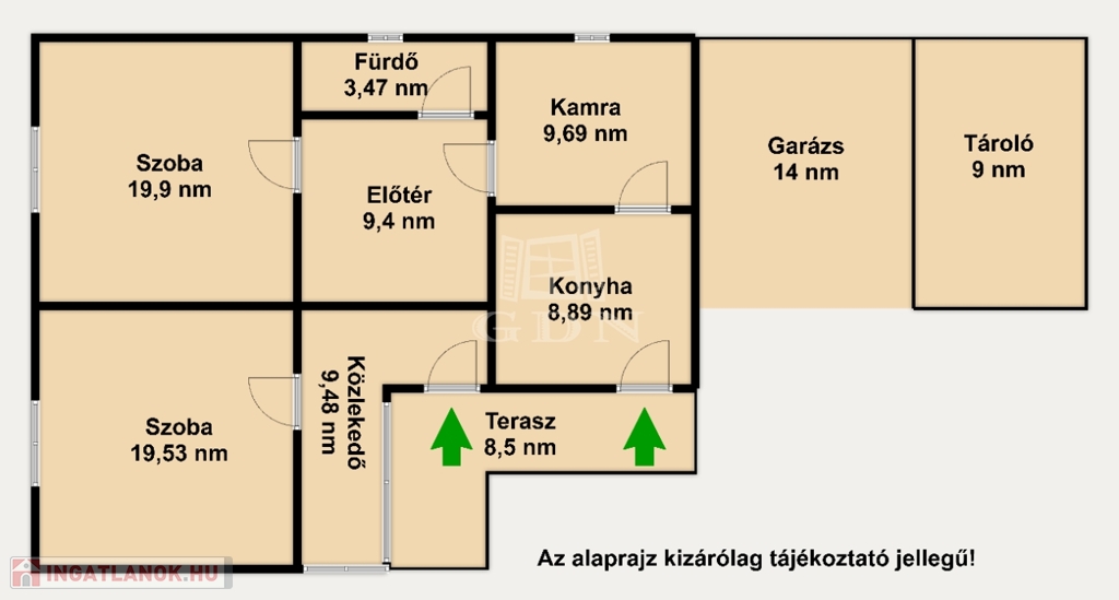 Van saját garázsa, kútja, valamint egy apró pince a külső tároló alatt.
