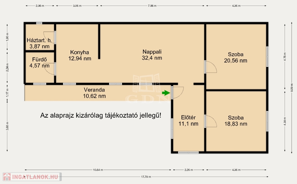 Az épületet kondenzációs gázcirkó, 1 db klíma, 2 szoba, amerikai konyha - nappali, füdőszoba, mosókonyha, valamint egy önálló 20 nm-es tároló jellemzi.