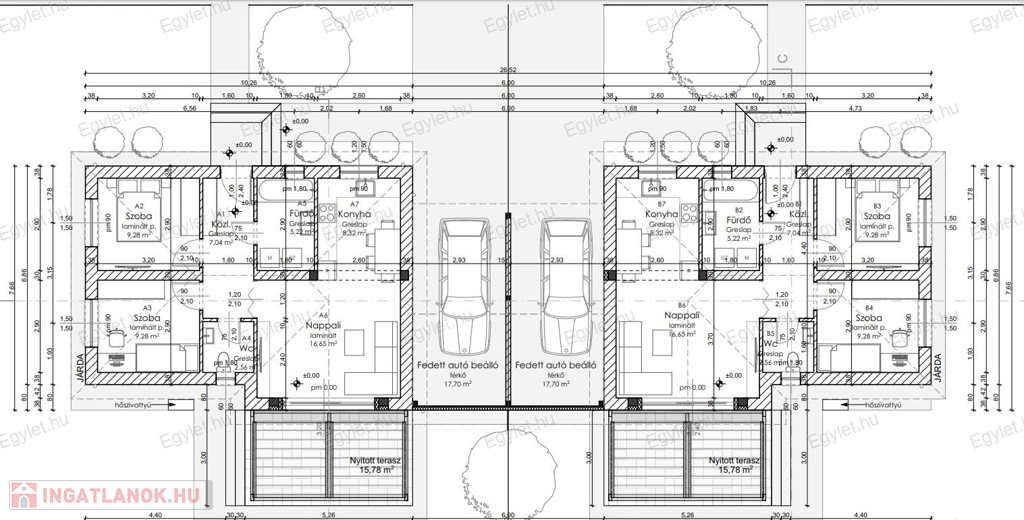 Minden telken, társasházi okirattal, betétesített helyrajzi számon 2 lakóegység kerül kialakításra. (Egyedi megoldás is kérhető személyes konzultáció során!)