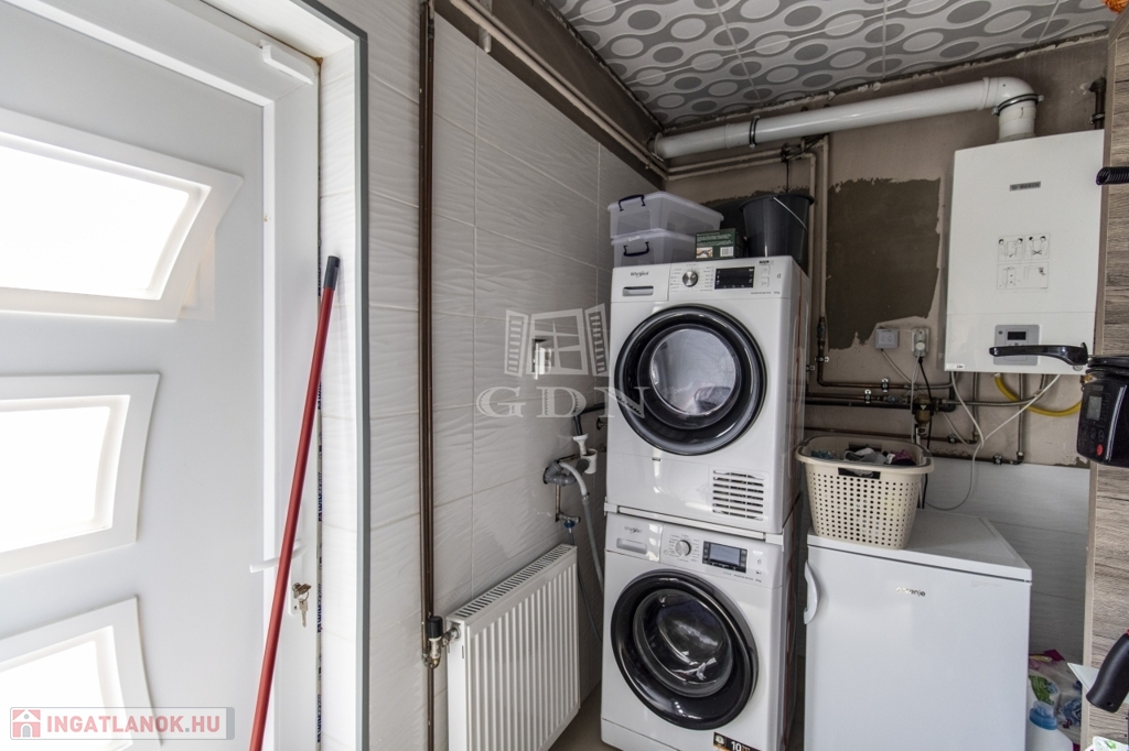 Az épületet kondenzációs gázcirkó, 3 db klíma, 2 + 1 félszoba (alaprajzon tároló), amerikai konyha - nappali, füdőszoba, mosókonyha, valamint egy önálló 30 nm-es tároló jellemzi.