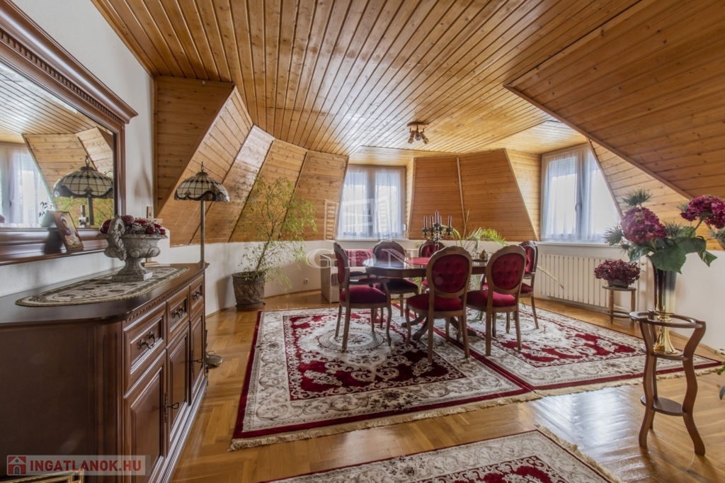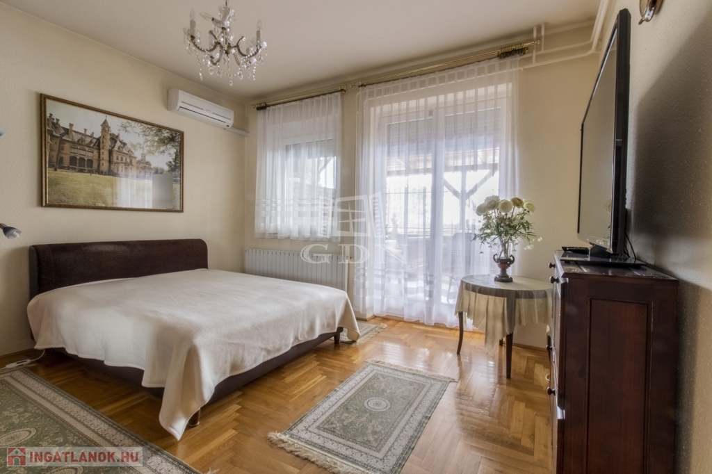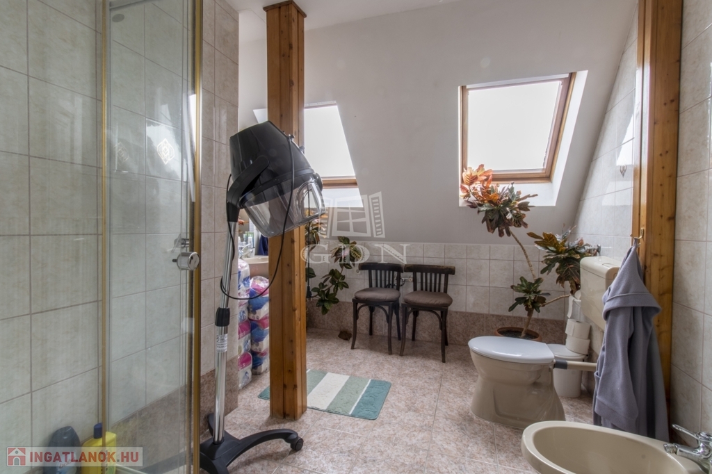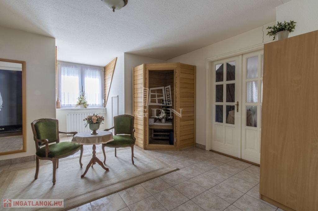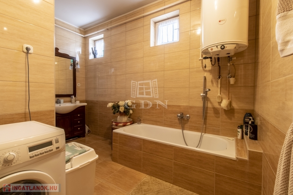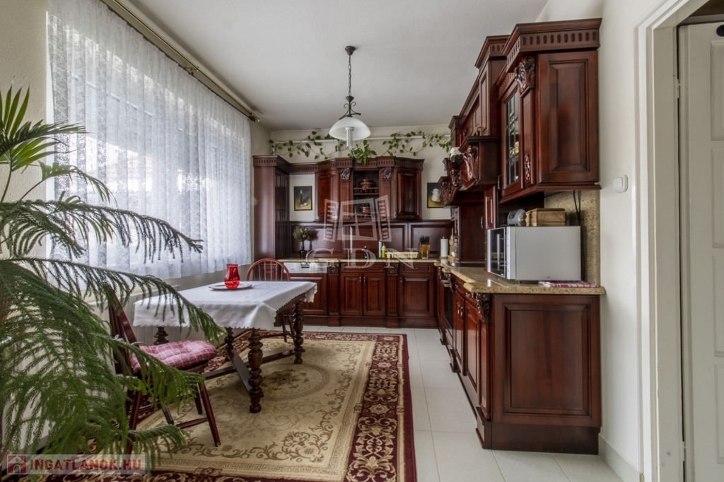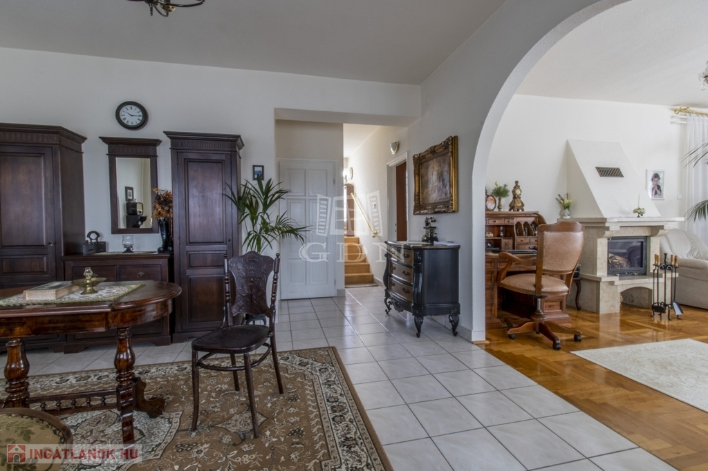 Az épületet gáz és vegyes kazán, 1 db klíma, 5 szoba, amerikai konyha - nappali, 2 füdőszoba, 100 nm-es pince, valamint az emeleten kb. 30 négyzetméternyi rejtett tároló jellemzi, a biztonságért kamera és riasztó rendszer felelős.