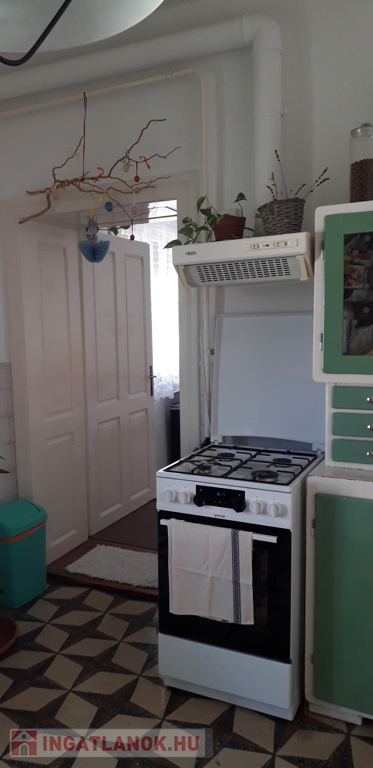 1965 körül épült,magas alapokon, vegyes falazatú. 1079m2 telken 78m2 családi ház Kb. 12m2 mellék épülettel. A lakóhelyiségekben ablakokon redőny , fűtés konvektorral megoldott , szobák parkettásak a többi helyiség járólap burkolatú. Bejárat az udvarról .Terasz , felette eső védő tető innen először a konyhába lépünk be .. baloldalon a nagy szoba , szemben a kamra ,padlásfeljáróval jobb oldalon közlekedő ,amiből kisszoba / utcafront felől/ a másik helyiség a fürdőszoba ami még a közlekedőből nyílik. Benne : mosdó , WC, tusoló , mosógép csatlakoztatási lehetőség és a gázbojler ami a melegvizet biztosítja. Az udvar és a kert, nagyrésze füvesített , de konyhakertnek is van helye. Többféle csemetefa lett telepítve, van amelyik már termőre fordult. Azon kívül van szőlő ,szamóca ,málna , fügebokrok, egy vén körtefa , jól termő diófák . A kert termése egy nagy család igényeit is kielégíti. Sok fajta rózsa ,hortenzia ,évelő virágok , orgona és mályva sövény szépíti a portát.. Településen bölcsi ,ovoda, iskola , kiváló orvosi ellátás , gazdabolt , élelmiszerbolt , két pizzéria , idősek otthona , kenyérbolt hamarosan elkészül..,fodrászat , kozmetika ,manikűr.. . Biztonságos település , segítőkész szomszédok. Étel házhoz szállítás. Nincs kiöregedőben a lakosság. Fejlődő település. Utca és a falu rendezett. Fő út halad keresztül a településen ami szintén a hely mellett szól.