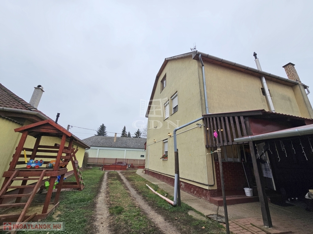 Eladó Újfehértó Puskin utcán egy 3 szintes, 5 szobás, 2 konyhás kertes családi ház garázzsal.