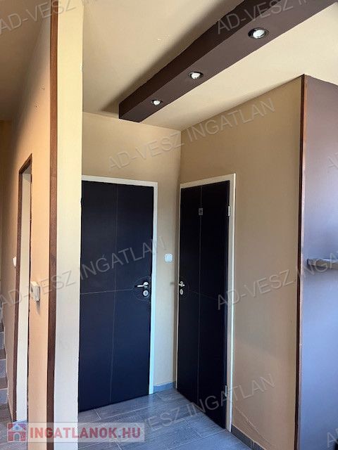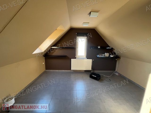 A másik ingatlan 2004-ben ytongból épült, műanyag nyílászárókkal. Az alsó szinten egy légterű helyiség, raktár, fürdőszoba wc-vel, külön vendég wc, az emeleten szintén egy légterű helyiség, mini konyhával, fürdőszobával, wc-vel került kialakításra.