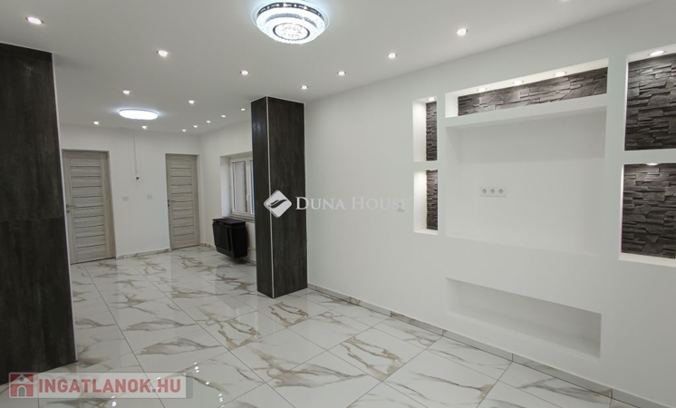 Újszász vasútállomás közelében 2 szoba + nappali amerikai konyhás 62nm-es ház eladó!Az épület vegyes falazatú fa tetőszerkezettel és cserép fedéssel.Teljes körű felújításon esett át:Új vakolás,glettelés,festésÚj réz villanyvezetékekÚj vízhálózatÚj design laminált , és járólapokÚj külső vakolás,és hálózásÚj hőszigetelt nyílászárók,és beltéri ajtókÚj zuhanyzó és szaniterekFűtése gázkonvektorokkal megoldott, melegvíz ellátása villanybojlerrel.A helyiségek tekintetében kialakításra került 2 külön bejáratú szoba,fürdő+WC, Amerikai konyha+nappali,mosókonyhaUdvara rendezett rajta egy 50 nm-es melléképület is helyet kapott.Elhelyezkedését tekintve tökéletes Újszászon a vasútállomás közelében helyezkedik el!Óvoda, iskola, élelmiszer bolt, orvosi rendelő, gyógyszertár, vasútállomás minden sétatávolságon belül elérhető!Tömegközlekedése is kiváló, vonattal Budapest 1 óra alatt , Nagykáta és Szolnok is 20 percen belül megközelíthető.Újszász Pest megye hátárán helyezkedik el ,az M4-es autópályától csak pár km-re Az ingatlan per teher és igénymentes azonnal költözhető.A Duna House teljes kínálatával kapcsolatban forduljon hozzám bizalommal!Ingyenes hitelügyintézés garantáltan a legjobb feltételekkel és a leggyorsabban.Eladás és vétel teljes körű ügyintézése, ingyenes tanácsadás, értékbecslés, megbízható ügyvédi háttér biztosítása.Amennyiben megtetszett önnek az ingatlan várom megtisztelő hívását a hét bármely napján akár hétvégén is!