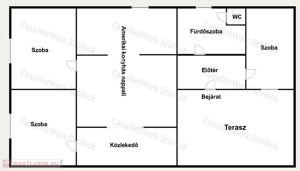 - előtér, amerikai konyhás nappali ,három nagy szoba, fürdőszoba + WC