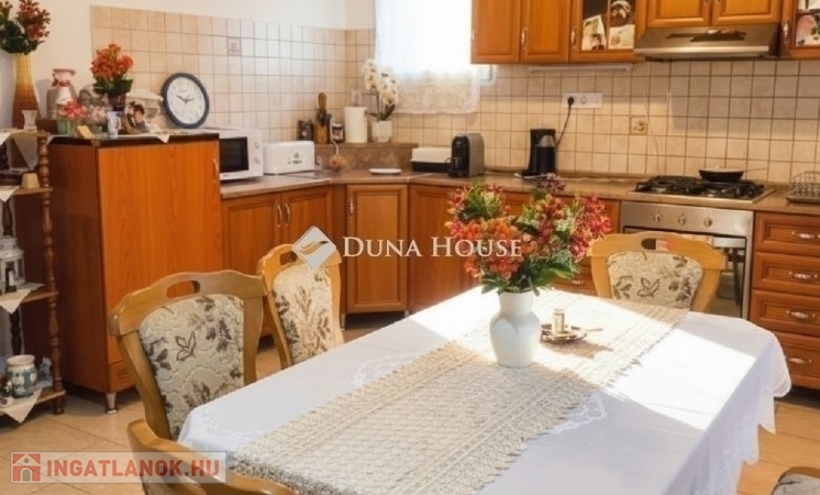 Eladó, felújított, kétgenerációs családi ház Üllőn, csendes kertvárosi környezetben! Üllő, 2225 - Központhoz közel, csendes utcábanTelekterület: 432 m²Hasznos alapterület: Összesen 161 m² + 39,5 m² padlástér + 24 m² melléképület + 27 m² garázsÉpítés éve: 1980-1981Felújítás éve: 2022Energetikai besorolás: B A ház kétszintes (+ pince), két önálló, teljesen elkülöníthető lakrészből áll, így ideális választás többgenerációs családok, összeköltözők vagy befektetők számára.A két lakrész közös mérőórákkal rendelkezik, de igény esetén könnyen szétválasztható.Az ingatlan klimatizált, kamerarendszerrel felszerelt, műanyag, redőnyözött nyílászárókkal és 10 cm Dryvit hőszigeteléssel ellátott. A fűtést és a meleg vizet korszerű gázcirkó biztosítja, amelyet 2022-ben cseréltek. A villany-, víz- és csatornahálózat teljes felújítása 2017-ben történt.A fűtési költség mindkét lakásra együtt átlagosan 25.000 Ft/hó. Földszint (92 m²):Nappali: 29 m² + 8,9 m² teraszHálószoba: 17 m² + 6,4 m² teraszAmerikai konyhás étkező: 20 m²Fürdőszoba, WC: 6,9 m²Előtér: 3,5 m²Közvetlen kijárat a fedett teraszra 16,1 m² és a kertbeA helyiségek világosak, jól szellőztethetők, minden ablakos, redőnnyel ellátott Emelet (53 m²):Tágas szoba: 27 m² (igény szerint kettéosztható) + Erkély 4 m²Nagy konyha: 13 m² (innen kijárat a 11 m²-es Fedett teraszra és az udvarra vezető külső lépcsősorhoz)Fürdőszoba: 1,5 m²WC: 1,5 m²Előszoba: 3 m²Pince (16 m²) Műszaki állapot és felújítások:A közművek cserélve: 2017Új fűtésrendszer, kombi gázcirkó: 2022Lindab tetőfedésÚj burkolatok és réz elektromos vezetékek10 cm homlokzati hőszigetelésMűanyag, redőnyös nyílászárókKlíma és kamerarendszer Udvar, melléképület és garázs:A rendezett, parkosított udvaron két funkcionális épület található:24 m²-es, szigetelt melléképület, amerikai konyhával, fürdőszobával, villanybojlerrel vendégházként is használható27 m²-es garázsÁsott kút a kert locsolásához Közlekedés és elhelyezkedés:Az ingatlan Üllő egyik csendes, nyugodt utcájában található, kiváló infrastruktúrával.Vasútállomás: Kőbánya-Kispest 21 perc alatt elérhetőAutóbuszjáratok szintén kb. fél óránként indulnak, 30 perc alatt Budapestre érkeznekEz a kétszintes, kétlakásos családi ház kiváló műszaki állapotban van, rendezett tulajdonviszonyokkal, felújított közművekkel, klímával, kamerarendszerrel és alacsony fenntartási költséggel.A külön bejáratú lakrészek és a több melléképület miatt ideális többgenerációs családoknak, vállalkozóknak, befektetőknek vagy akár kiadásra is.