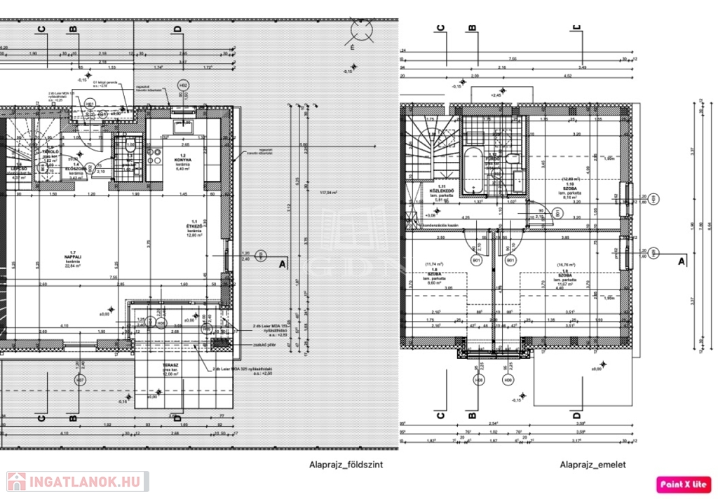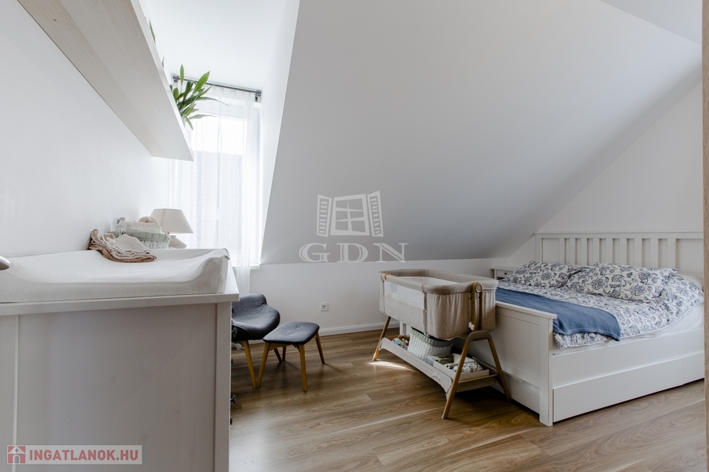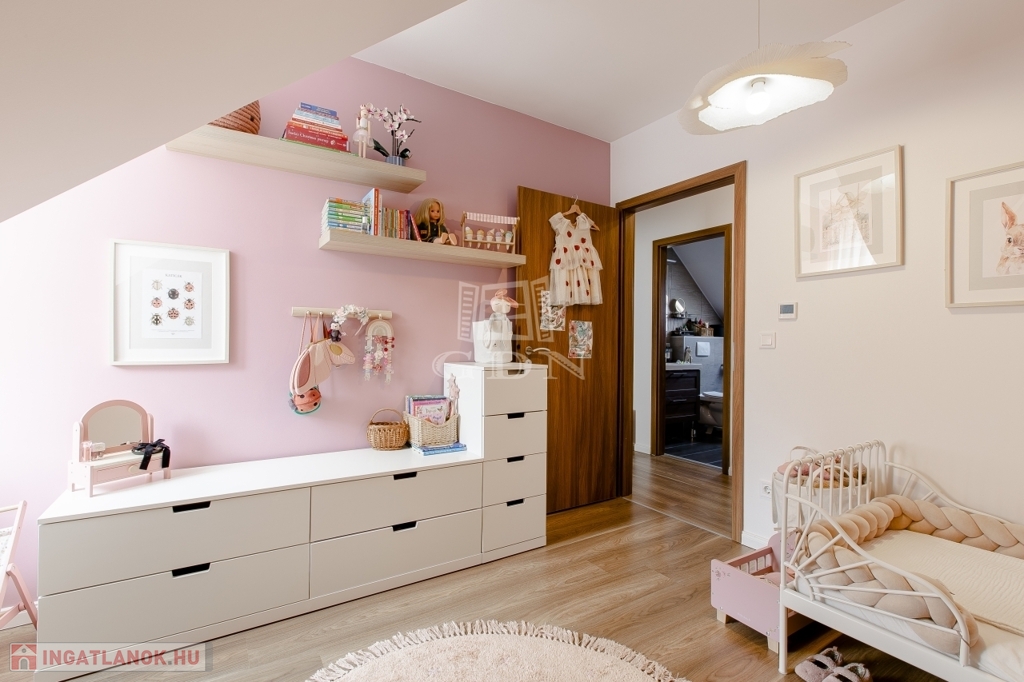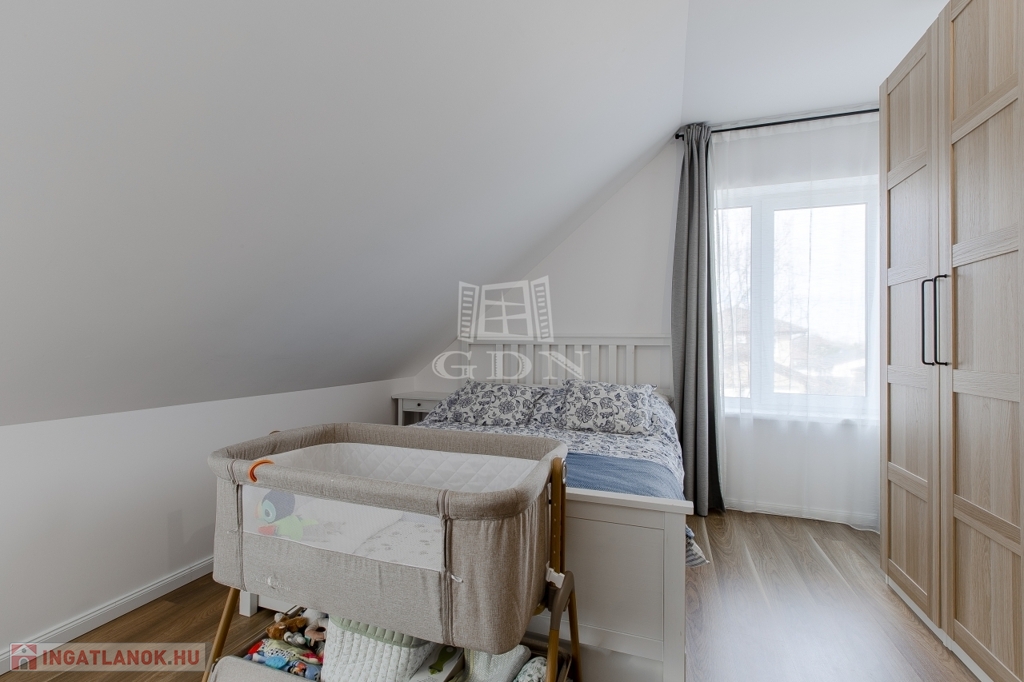 Az emeleten három teljes értékű külön nyíló szoba és egy kádas fürdőszoba lett kialakítva.
