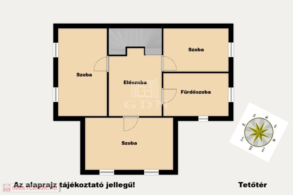 - Emelet: 3 Szoba, Fürdő + WC, Közlekedő