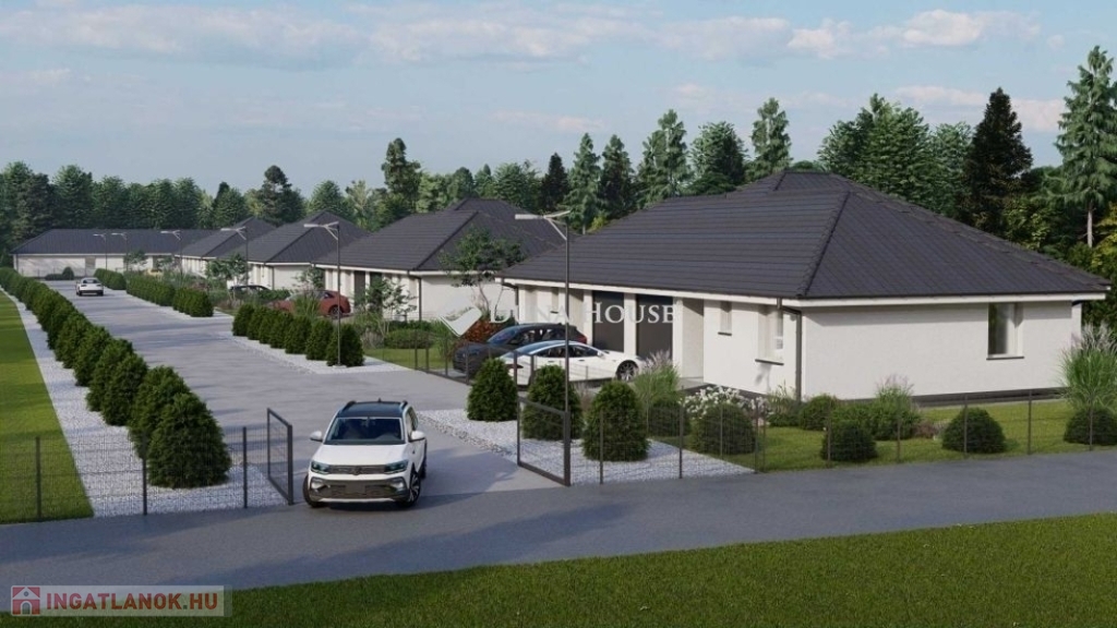 ELADÓ ÚJ ÉPÍTÉSŰ 3 szobás+GARÁZS KIALAKÍTÁSÚ IKERHÁZ Üllő szívében, KIVÁLÓ ÚJSZERŰ HÁZAK KÖRNYEZETÉBEN!RENDEZD BE SAJÁT ÍZLÉSED SZERINT!Roppant világos jó tájolású, jó elosztású ingatlan.Kialakítása: 2 szoba, nappali, konyha, fürdő, külön wc, előtér, közlekedő, 19 m2 terasz, garázs. Alapterület: 90,26 m2 fűtött alapterület 72.26- garázs területe 18 m2Telek: 741 m2 ( 2 lakás helyezkedik el)Utca fronti kerítés az árban.Műszaki paraméterek: Az épületet kívülről 15cm-es dryvit szigetelőrendszerrel látjuk el,a lábazatpedig 8cm-es vízzáró xps szigetelést kap.Az épület szinezése trilakthermotek dryvit 1,5mm es kapart vakolattal történik fehér színben.Alábazati szigetelést akril műgyanta,diszperziós felületképző vakolattallátjuk el,szürke szinben.Az épület belső falait Baumit gv-25 habarcsalvakoljuk gépi felhordással,2x gletteléssel,2x gurítással fehér színrefestve.Válaszható:-hideg és melegburkolat 6000 ft/ m2-fürdőkád bruttó -70000ft értékben,műanyag kádelőlappal.Beépítésre kerül 1db cersanit president monoblokkos wc bruttó -28000ftértékben.Beépítésre kerül 1db kádtöltő csaptelep,1db hideg melegvizes csaptelep,1db mosogató csaptelep egységesen bruttó-20000ft os egységáron mofém tip. Beépítésre kerül 1db 60-65cm es mosdó bruttó 25000ft os áron.Fűtés:Az épület fűtését Fisher FHF-MBWHS tip. vagy Hajdu HPAWtip.monoblokkos hőszivattyú biztosítja.A kazán vezérlésérőlcomputherm T70 vagy Q7 tip programozható digitális szobatermosztátgondoskodik.Az épület légköbméterét figyelembe véve mindenhelységbe padlófűtési körök kerülnek beépítésre.A háztartási melegvizet,Bosch Tronic 2000T tip.150 literes villanybojler szolgáltatja,beépített termosztáttal. Opcióként: választható hmv tartály a hőszivattyú mellé ( vételár nem tartalmazza)KÖZELBEN M4-es autópálya, Budapest távolsága autóval 8 perc.Autóval 2 perc Iskola, Óvoda, Gyógyszertár.ERDEI SZABADIDŐPARK KÖZVETLEN KÖZELSÉGBEN.Felsőpakony, Ócsa, Gyál, Vecsés veszi körbe Üllő települést.Pontos Műszaki tartalmat viszek az ingatlan mutatásra!Több éves közös együttműködés a kivitelezővel.Jöjjön el nézze meg, szeressen ön is bele.Várom megtisztelő hívását!Átadás : 2027.I.negyedév