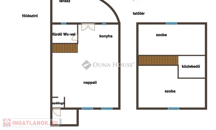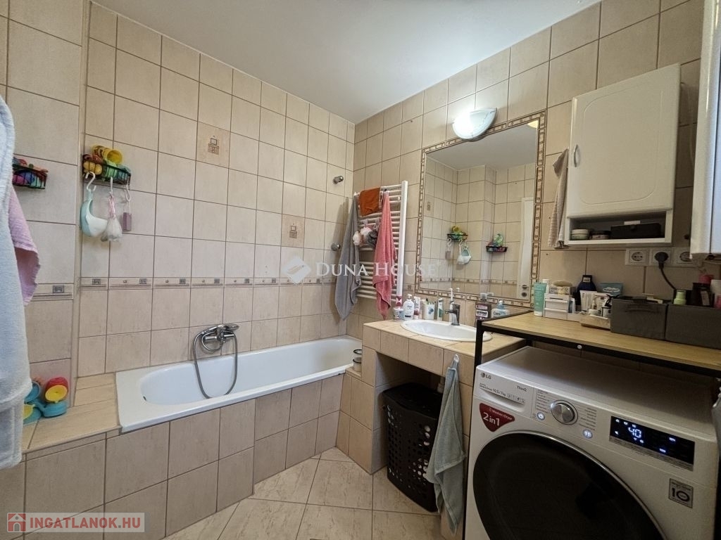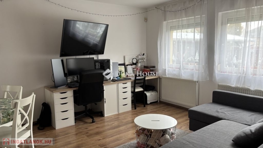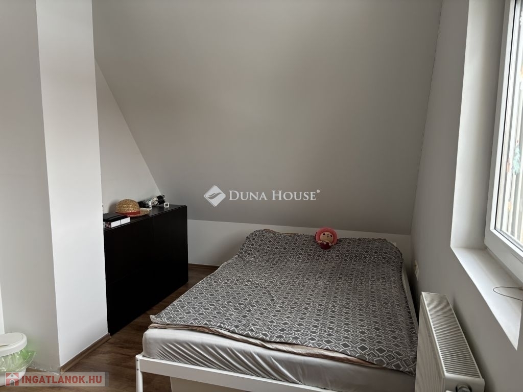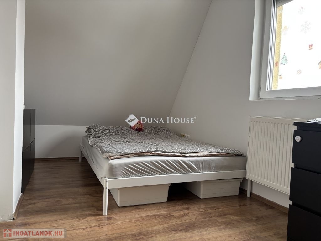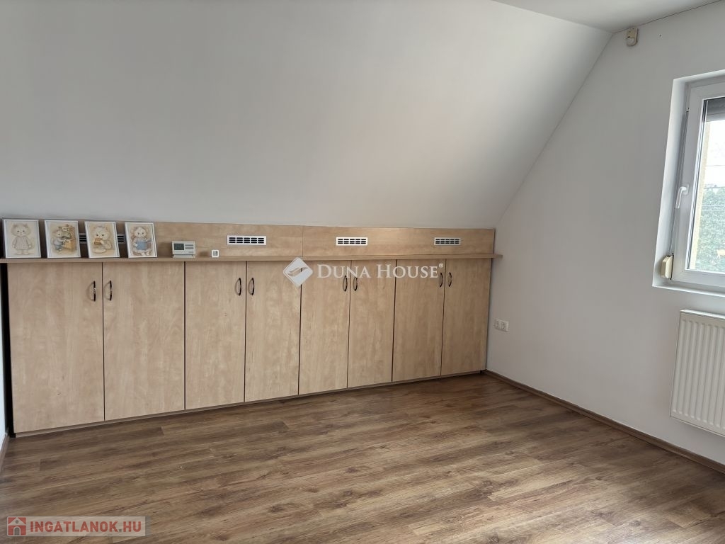 Eladó Pest-megyében, Üllőn, 294 nm-es, összközműves telken, egy 2006-os építésű, 64 nm-es, nappali + 2 szobás, tetőtér beépítéses Ikerház fél.Az épület 2006-ban épült, beton alapra, tégla falazattal, beton födémmel, cseréppel fedett tetővel. A falazatra egységes, 10 cm-es dryvitos hőszigetelés került. A nyílászárók hőszigetelt üvegezésű, műanyag szerkezetek, redőnnyel és szúnyoghálóval szerelve.A lakás földszinti részén szélfogó, előszoba, nappali, konyha, fürdő, a tetőtérben közlekedő és két háló található. A hátsó kert kívülről és a konyhából nyíló ajtón keresztül a teraszon át is megközelíthető.A nappali és a szobák laminált parkettával, a többi helyiség és az emeletre felvezető beton lépcső is, járólappal fedett.A konyhabútor a gépészettel, és az elszívóval együtt a vételár részét képezi.A fűtésről és a használati meleg víz-ellátásról kombi cirkó gondoskodik, a hőleadók lapradiátorok. A tetőtérben hűtő-fütő klíma berendezés emeli a komfortérzetet. Az ingatlan mozgásérzékelőkkel, riasztóval szerelt.A 845 nm-es önálló telken 3 önálló egységet alkotó ingatlan található. Az eredeti épület egy régebbi építésű családi ház. A porta megosztásra került és 2006-ban, egymáshoz képesti eltolással két ikerház épült, melyből most az egyik eladó.Az eladásra kínált ingatlan természetben is és jogilag is teljesen független a többitől. Az iker szomszéddal közös falra 7,5 cm vastagságú Halltex hangszigetelő rendszer került.Saját használatú, lekerített, 294 nm-es kerttel rendelkezik. A telek növényekkel beültetett, melyben fúrt kút és automata öntözőberendezés szolgálja a tulajdonosok kényemét. A kertben elől két autó számára kialakított fedett kocsibeálló, és a kerti szerszámok tárolására alkalmas kis tároló található.A gépkocsibeálló kamerával megfigyelt, valamint az elektromos kapu elő lett készítve.A beépített bútőrok a vételár részét képezik!