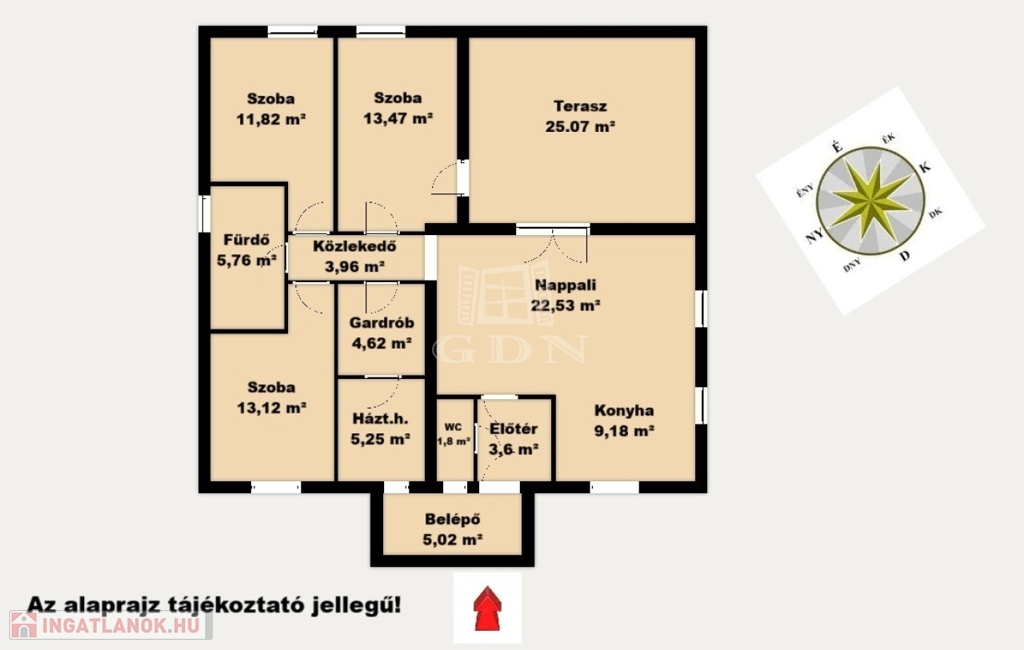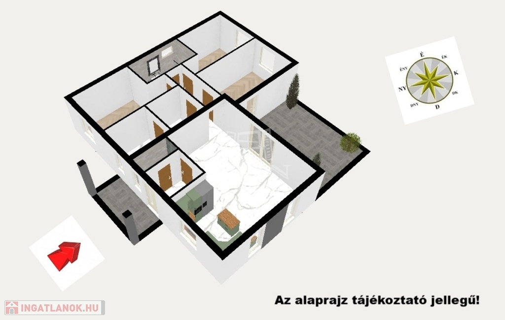 A nagyméretű AMERIKAI KONYHÁS NAPPALI mellett három különálló szoba is megtalálható.