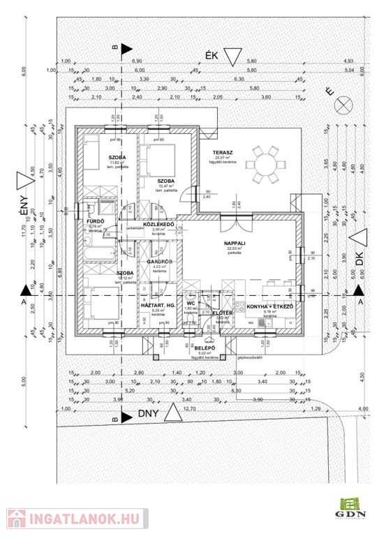 Az elegáns belső terekben a nappaliból és az egyik hálóból nyílik a tágas, 25m2-es TERRASZ, ahol kiválóan lehet pihenni.