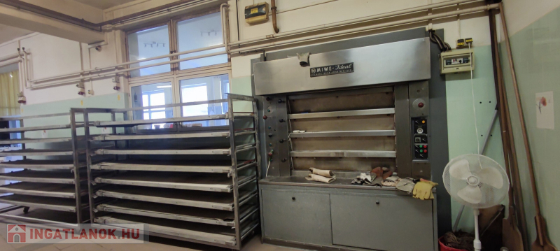 A pékség 500 m2-es épületben található, jelenleg is üzemel, több környező település boltjait látja el napi szinten pékáruval, 40 boltos ügyfélkörrel rendelkezik és két saját bolt is tartozik hozzá. A pékség nyereséges, a vásárlás napjától hasznot hoz új tulajdonosának. Teljesen felszerelt, 4 kemence (2 forgós és 2 lapátos), dagasztó- és zsömléző gépek, fagyasztó- és hűtőkamra, sokkoló berendezés, raktárhelyiség, saválló ajtók és eszközök, működő kamerarendszer, autóknak beállási lehetőség, pékbolt található itt. A szállítás két saját autóval megoldott. Fagyasztott pékáru gyártásával is foglalkoznak. Beléptetőkártyás elektronikus kapu került kialakításra az itt dolgozók részére. Az épület teljesen szigetelt, két éve teljes felújításon esett át.