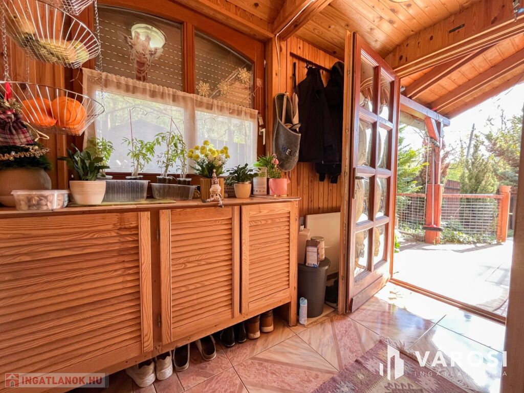 Két autó parkolására is alkalmas, fedett garázs, előkert, családi vagy társasági életre alkalmas oldalkert kerti konyhával, sütőgetővel.