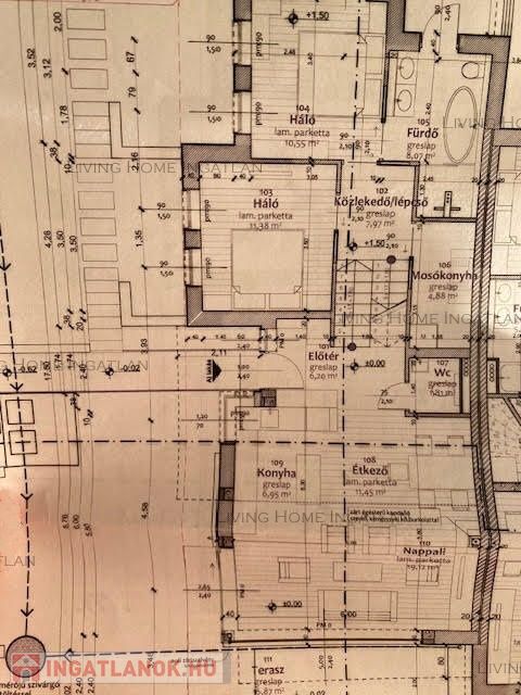 Félemelet: Néhány lépcsőfokkal juthatunk a félemeletre, ahol két háló található, melyek jelenleg egybenyitottak. A fürdőben kétszemélyes walk-in zuhanyzó, szabadonálló kád, két mosdó található. A hátsó teraszra a hálóból és a fürdőből is kiléphetünk. A kerti szauna és a merülő medence teszik teljessé a wellness hangulatot.