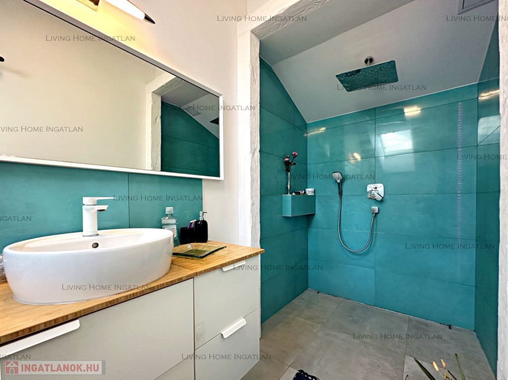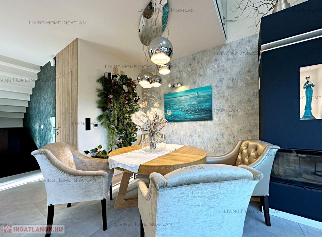 A különleges építészeti megoldásokkal kialakított terek és a szinteltolás tágassá, élhetővé teszik az ingatlant. A galériáról egyaránt gyönyörű a panoráma nyílik a környező hegyekre és a belső terekre is. Minőségi burkolatok, egyedi nyílászárók, egységes dizájn és harmonikus színek jellemzik az egész házat.