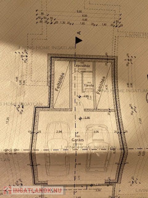 Alagsor: Kétállásos garázs, két tágas gardrób, közlekedő.